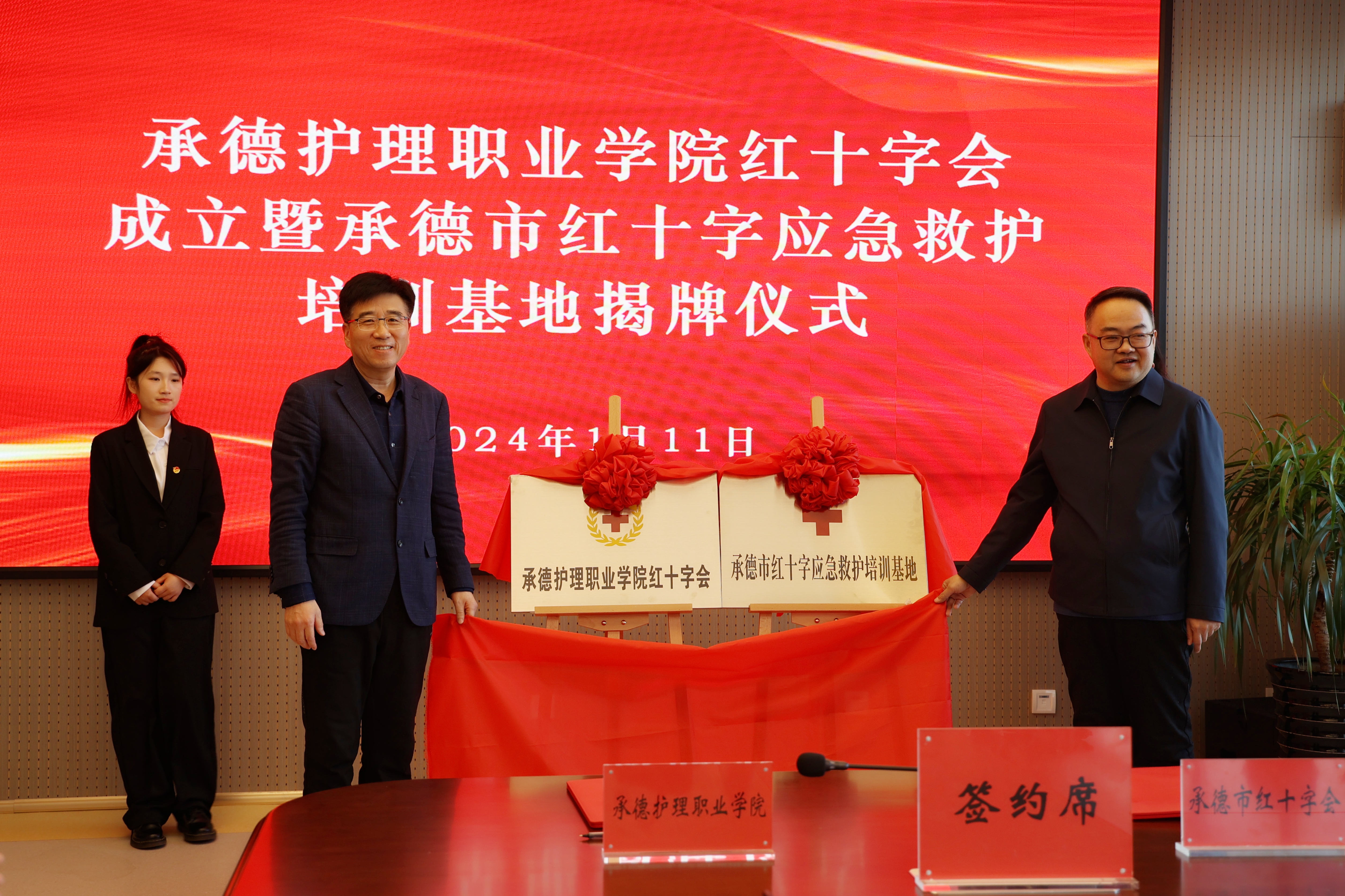 为进一步贯彻落实健康中国行动(2019-2030)战略部署要求,助推健康河北承德行动落实落细,促进医学教育事业与红十字会“三救三献”志愿服务事业健康融合发展,1月11日,学校在行政楼601会议室举行“beat365英国官方网站红十字会成立暨承德市红十字应急救培训基地揭牌仪式”,校党委书记高中卫、校长单伟颖、学校领导班子成员、承德市红十字会副会长曾强,以及市红十字会相关人员,学校教务处、学工部、团委、各系部负责人及学生代表参加了此次仪式。仪式由副校长徐国辉主持。