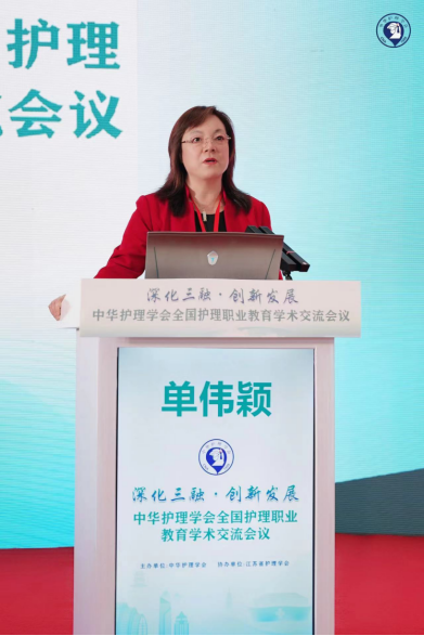 单伟颖在会上作了《贯彻落实国家标准确保高职护理人才培养质量》的报告,她结合国家相关政策,从高职护理专业重要地位、高职护理专业国家标准、高职护理专业高质量发展三方面进行了阐述,随着健康中国战略提出,高职护理教育发展要面向国家重大需求,面向人民生命健康,通过分析国家高职护理专业教学标准,提出要健全专业教学质量监控管理制度,加强课程建设水平及质量改进,完善建设质量标准,建议各院校要以定位清晰、合理招生、培养过程等方面规范并提升高职护理专业人才培养。