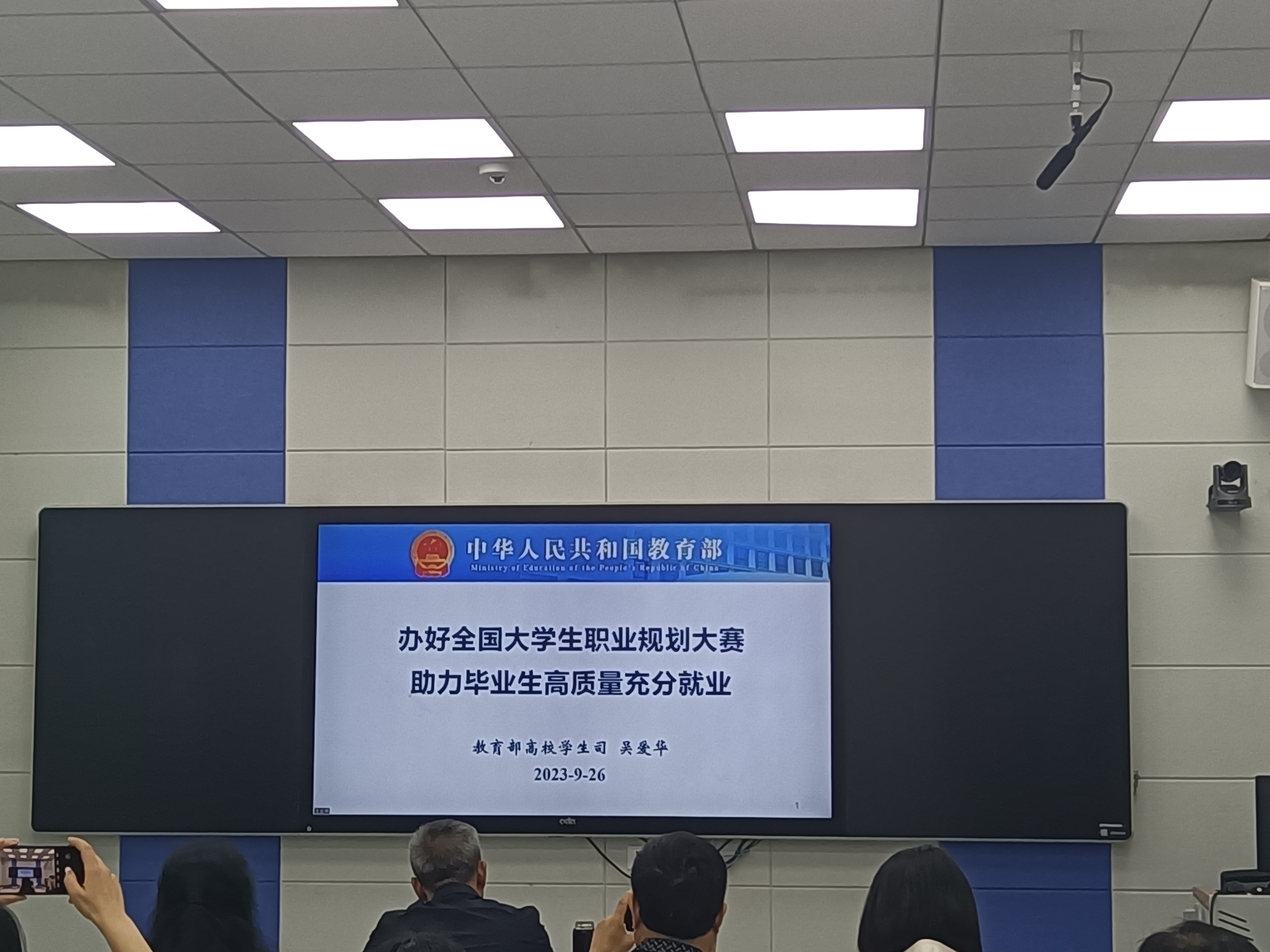 9月26日下午,教育部首届全国职业规划大赛培训会议召开,学校在图书馆二楼智慧教室设分会场组织观看收听。副校长白兴武,各系部党总支书记、副书记,就业专干、2024届、2025届毕业班辅导员、职业生涯规划课任课教师及招生就业处全体人员参会。