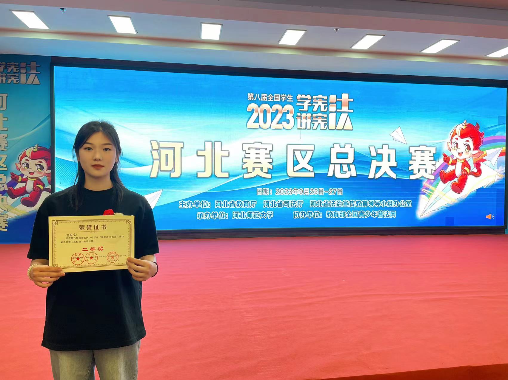 近日,由河北省省教育厅、河北省省司法厅、河北省法治宣传教育领导小组办公室主办,河北师范大学具体承办的第八届河北省学生“学宪法 讲宪法”活动省级决赛圆满落幕。本次比赛,beat365共派两名同学参加比赛。比赛分为演讲比赛和素养竞赛,内容主要围绕宪法及相关法、民法典、未成年人保护法等法律法规展开。演讲比赛包括主题演讲和命题演讲两个环节,素养竞赛采取闭卷形式进行。