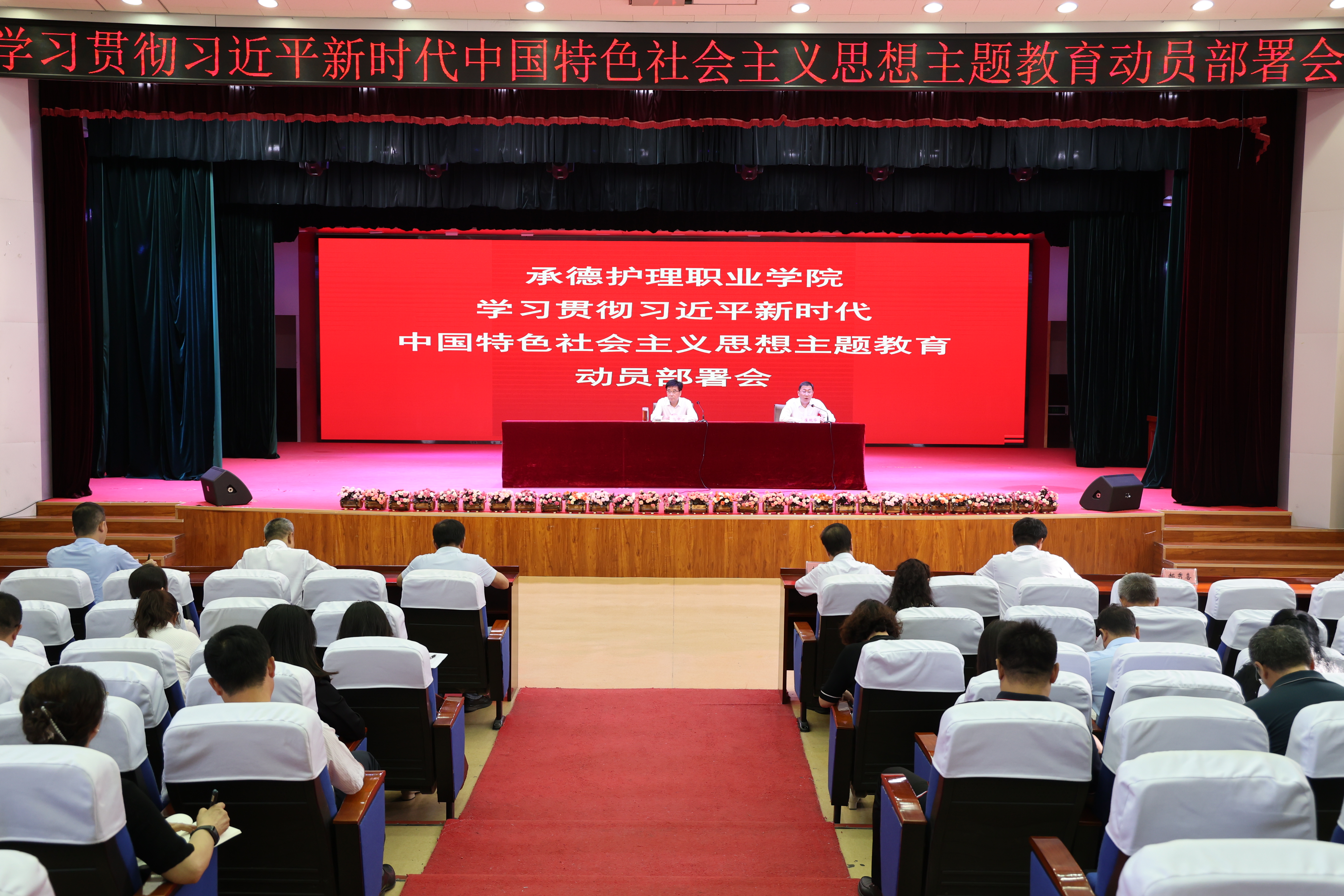 9月15日下午,beat365召开学习贯彻习近平新时代中国特色社会主义思想主题教育部署会。校党委书记高中卫传达承德市主题教育部署会议精神并作讲话。副校长崔艳华主持会议。学校党委班子成员、中层以上领导干部参加会议。