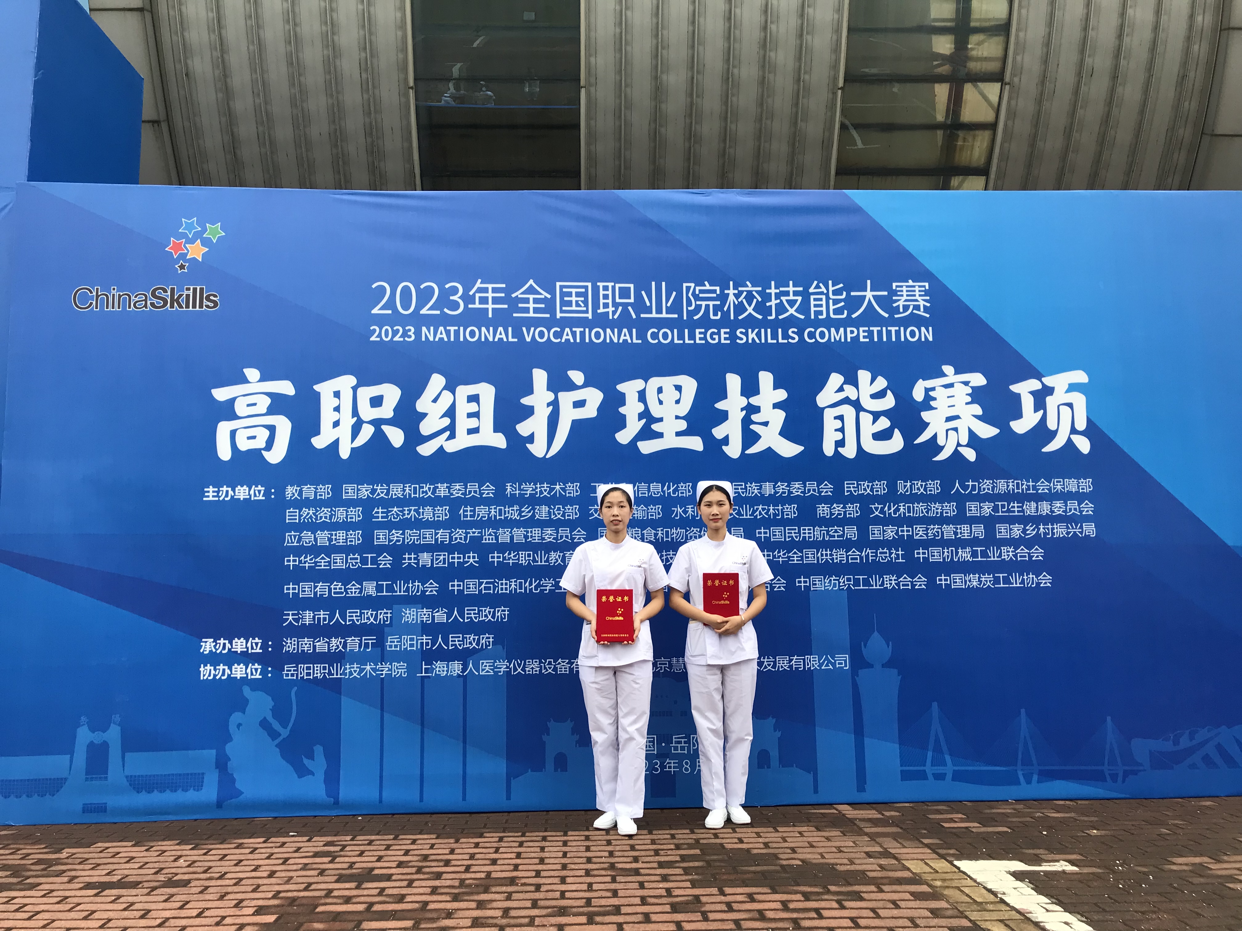 8月24日,由教育部牵头发起,湖南省教育厅、岳阳市人民政府承办,岳阳职业技术学院协办的2023年全国职业院校技能大赛高职组“护理技能”赛项在湖南省岳阳市举办。由beat365涉外护理系主任谭淑娟领队,路雪燕和王吉为指导教师,吴清玉和张晓丽同学组成的参赛队代表河北省参加此赛项比赛,并荣获团体三等奖,为河北省和学校争得了荣誉。