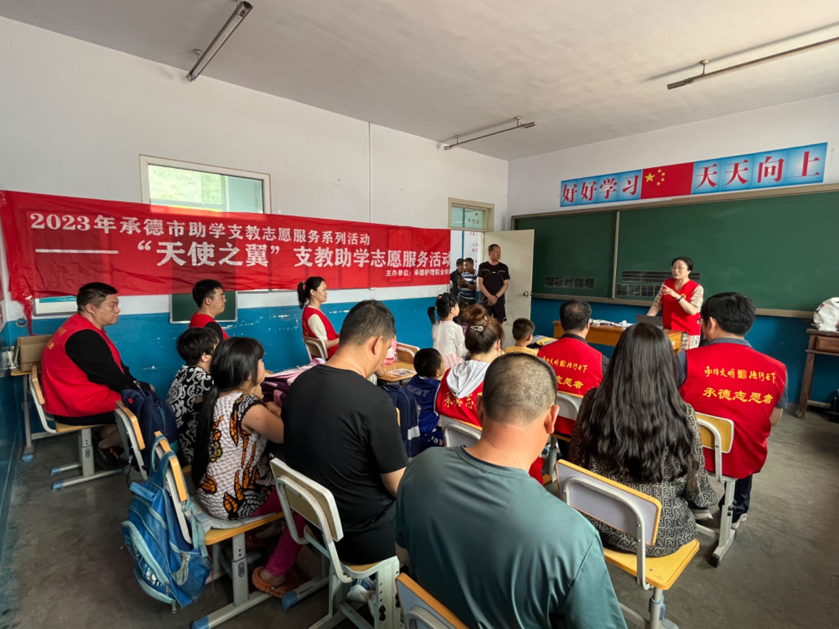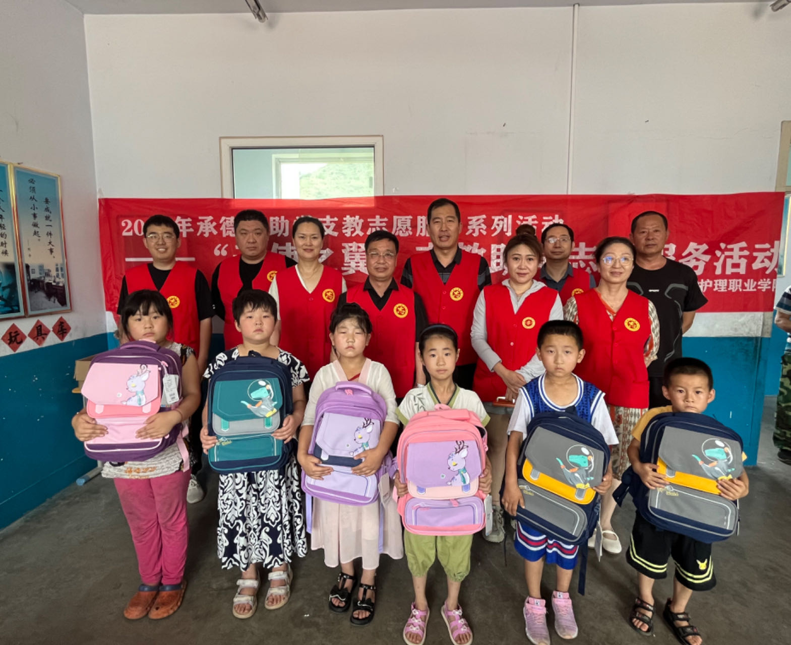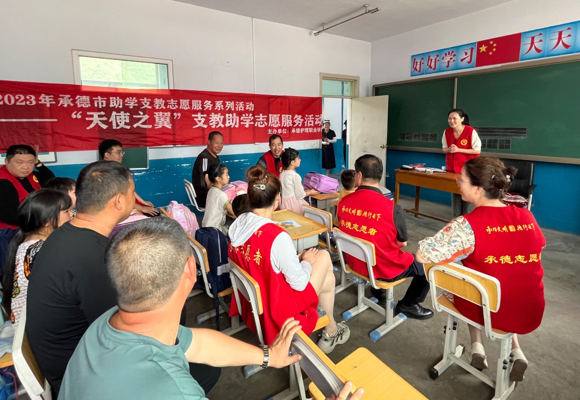 为切实做好新时代文明实践志愿服务结对帮建,助力乡村振兴,7月3日,宣传与网络中心党支部到承德县八家乡桲椤台村开展“天使之翼”支教助学志愿服务活动。学校党委副书记赵树才,党支部书记、党委宣传部部长苗玉东,支部成员以及驻桲椤台村第一书记赵江艳,八家乡武装部部长、桲椤台村党支部书记、村长胡德军,桲椤台村小学校长王义成参加活动。