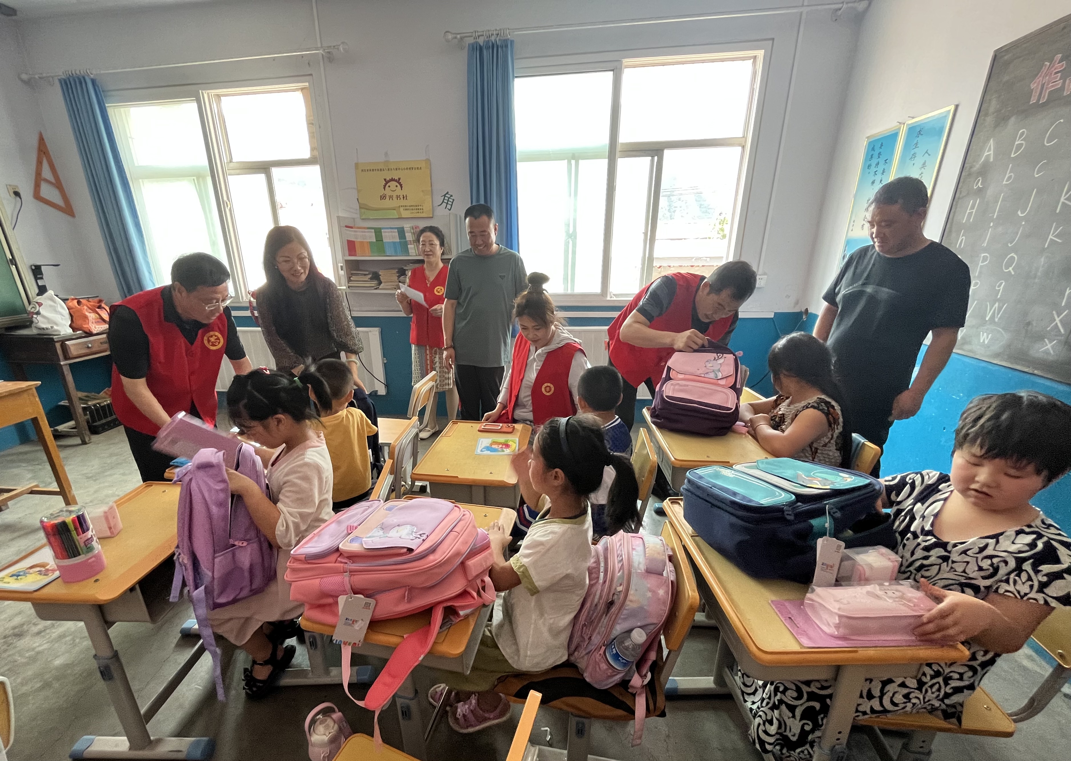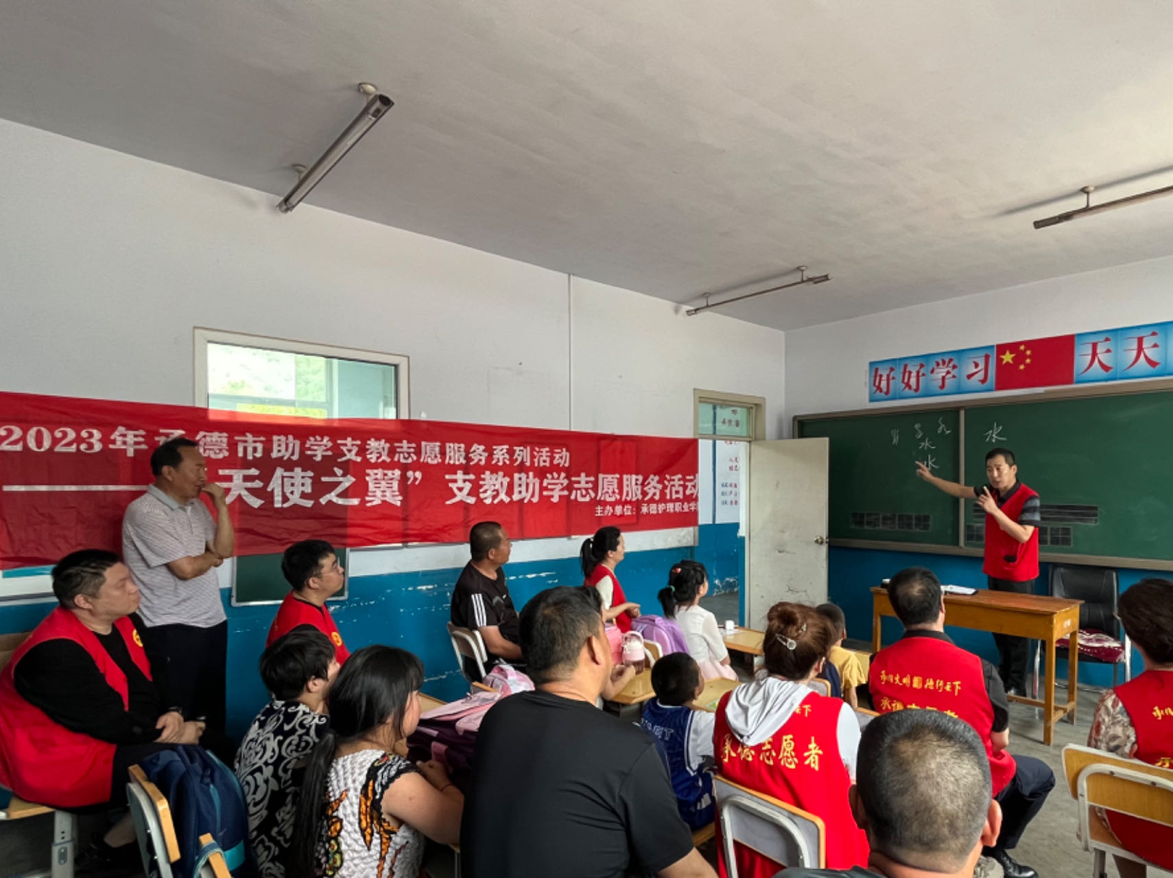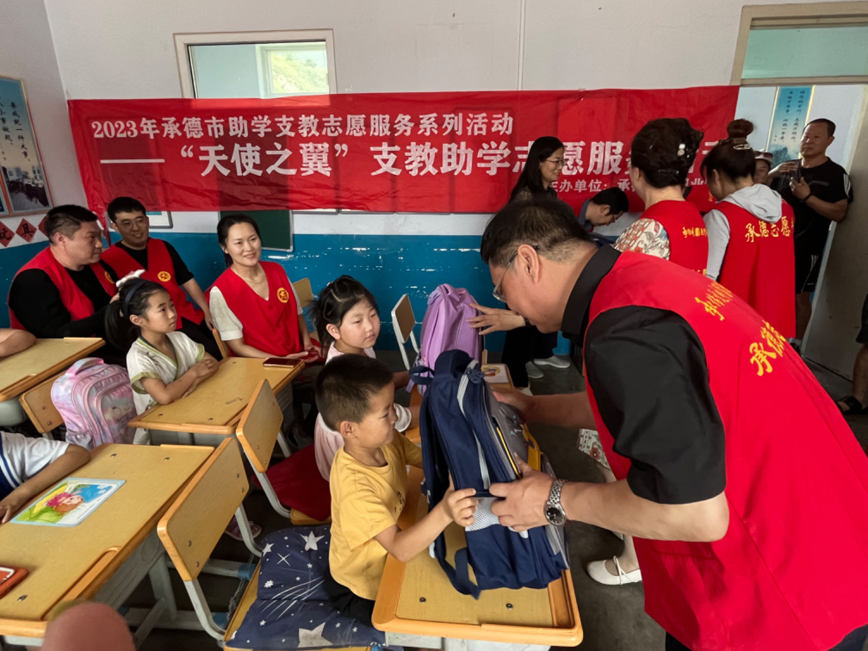 为切实做好新时代文明实践志愿服务结对帮建,助力乡村振兴,7月3日,宣传与网络中心党支部到承德县八家乡桲椤台村开展“天使之翼”支教助学志愿服务活动。学校党委副书记赵树才,党支部书记、党委宣传部部长苗玉东,支部成员以及驻桲椤台村第一书记赵江艳,八家乡武装部部长、桲椤台村党支部书记、村长胡德军,桲椤台村小学校长王义成参加活动。