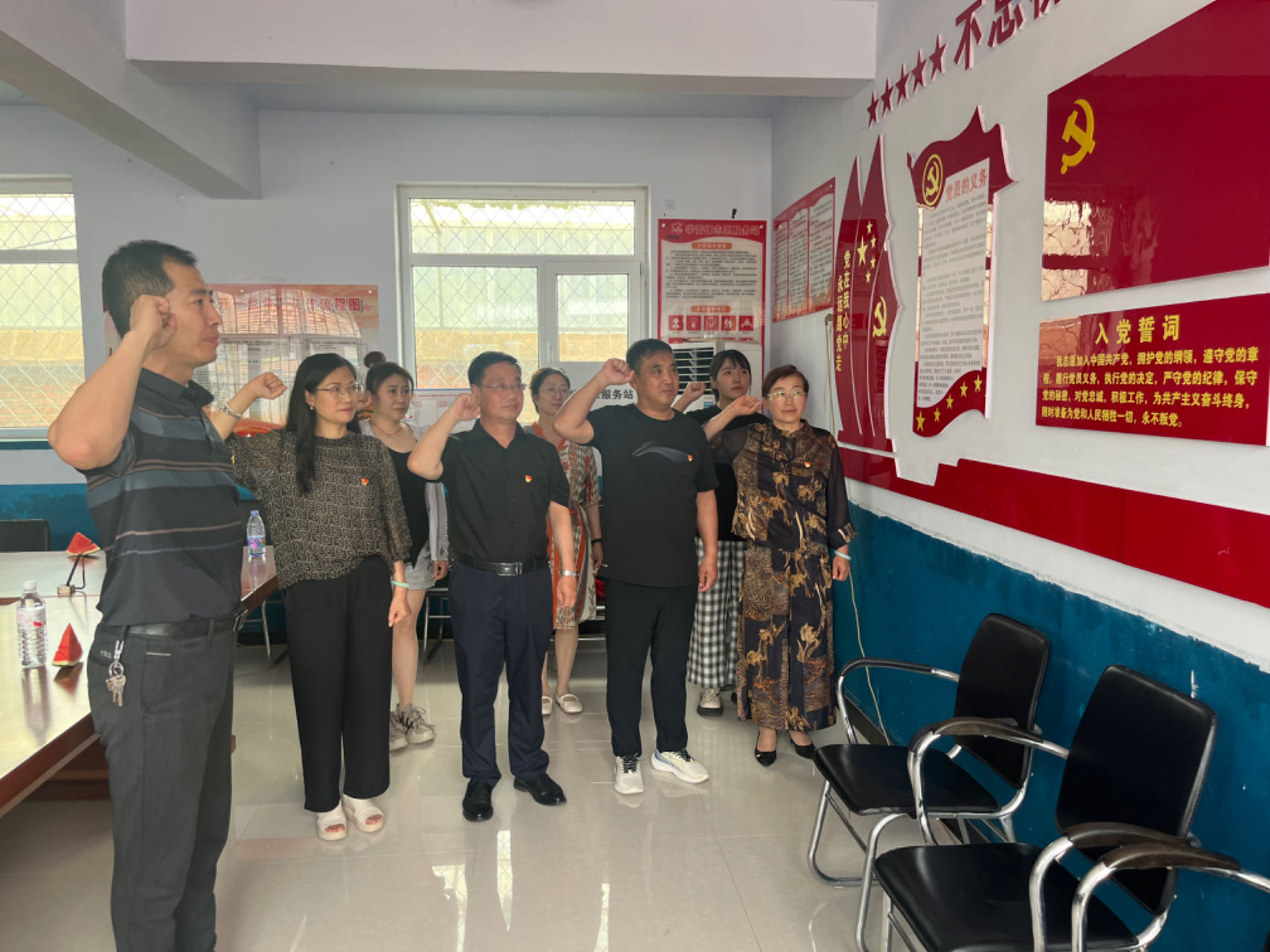 活动后,党员志愿者们在村党员活动室,与驻村工作队党员和桲椤台村党员代表面向党旗,庄严举起右手,重温入党誓词,回顾入党初心,以铿锵有力的誓言表达对党的无限忠诚以及听党话、跟党走的坚定决心。