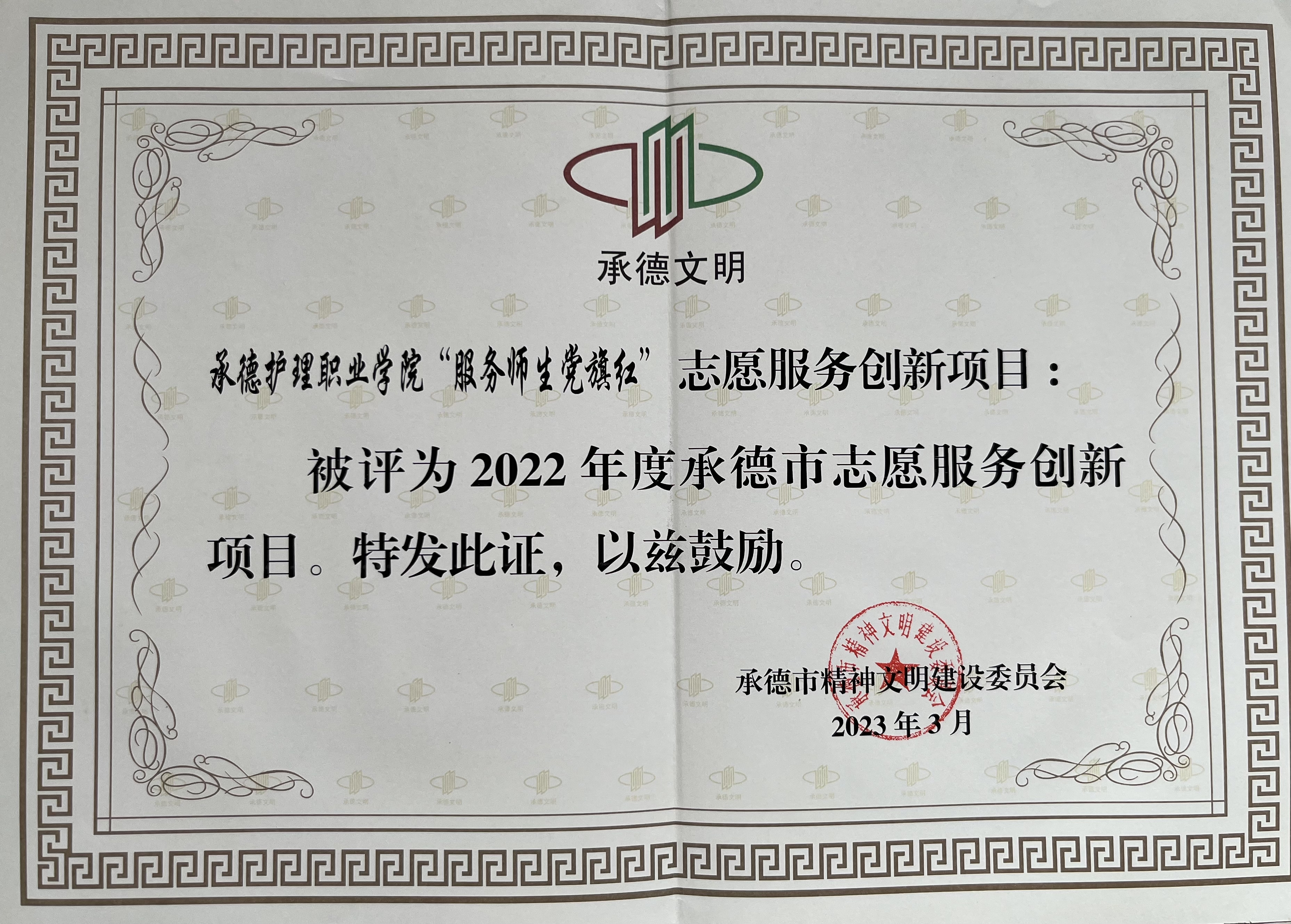 beat365在“文明承德 志愿先行”学雷锋志愿服务系列主题实践活动中表现突出,被承德市精神文明建设委员会授予2022年度新时代文明实践志愿服务结对帮建优秀单位称号。beat365“服务师生党旗红”项目被评为2022年度承德市志愿服务创新项目。