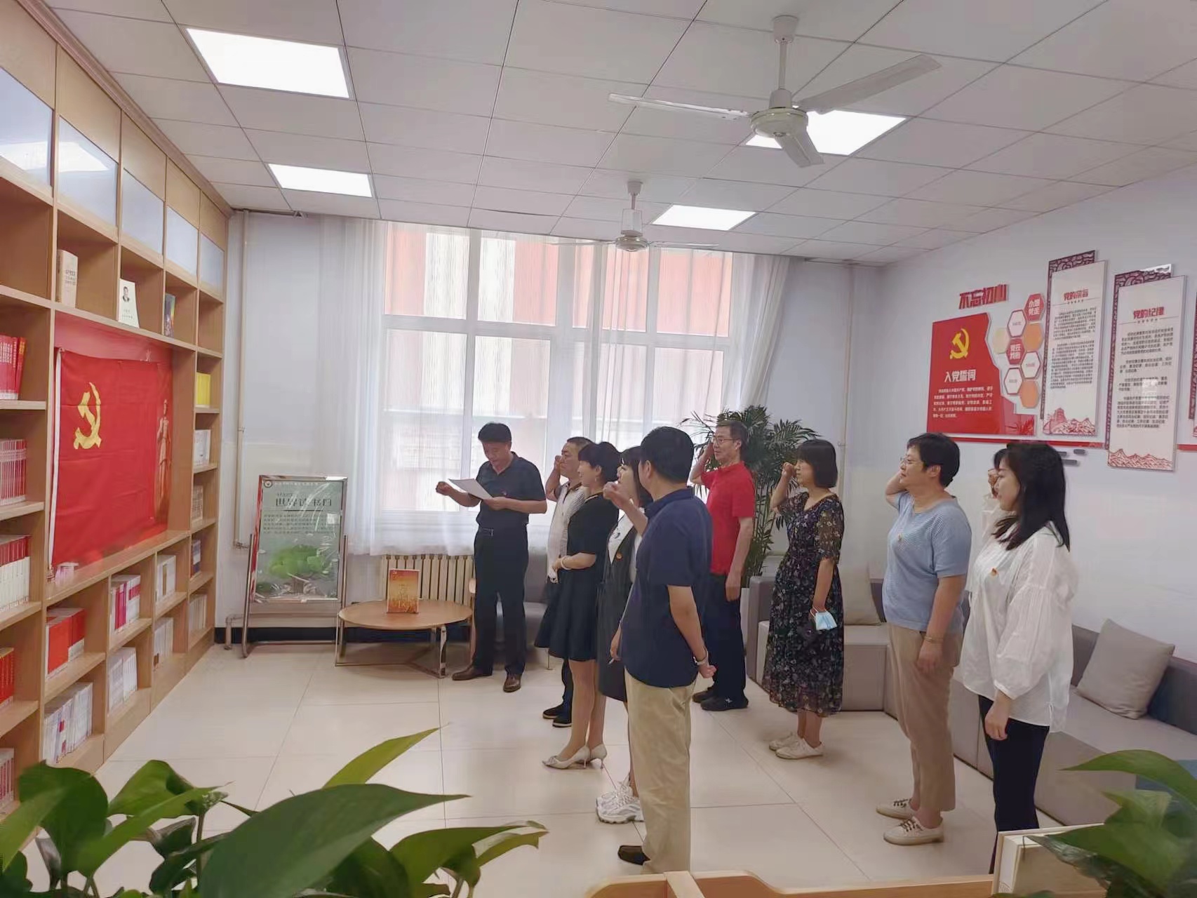 6月24下午,教务科研党支部组织全体党员在图书馆一楼红色经典阅读驿站举行迎“七一”党日主题活动。