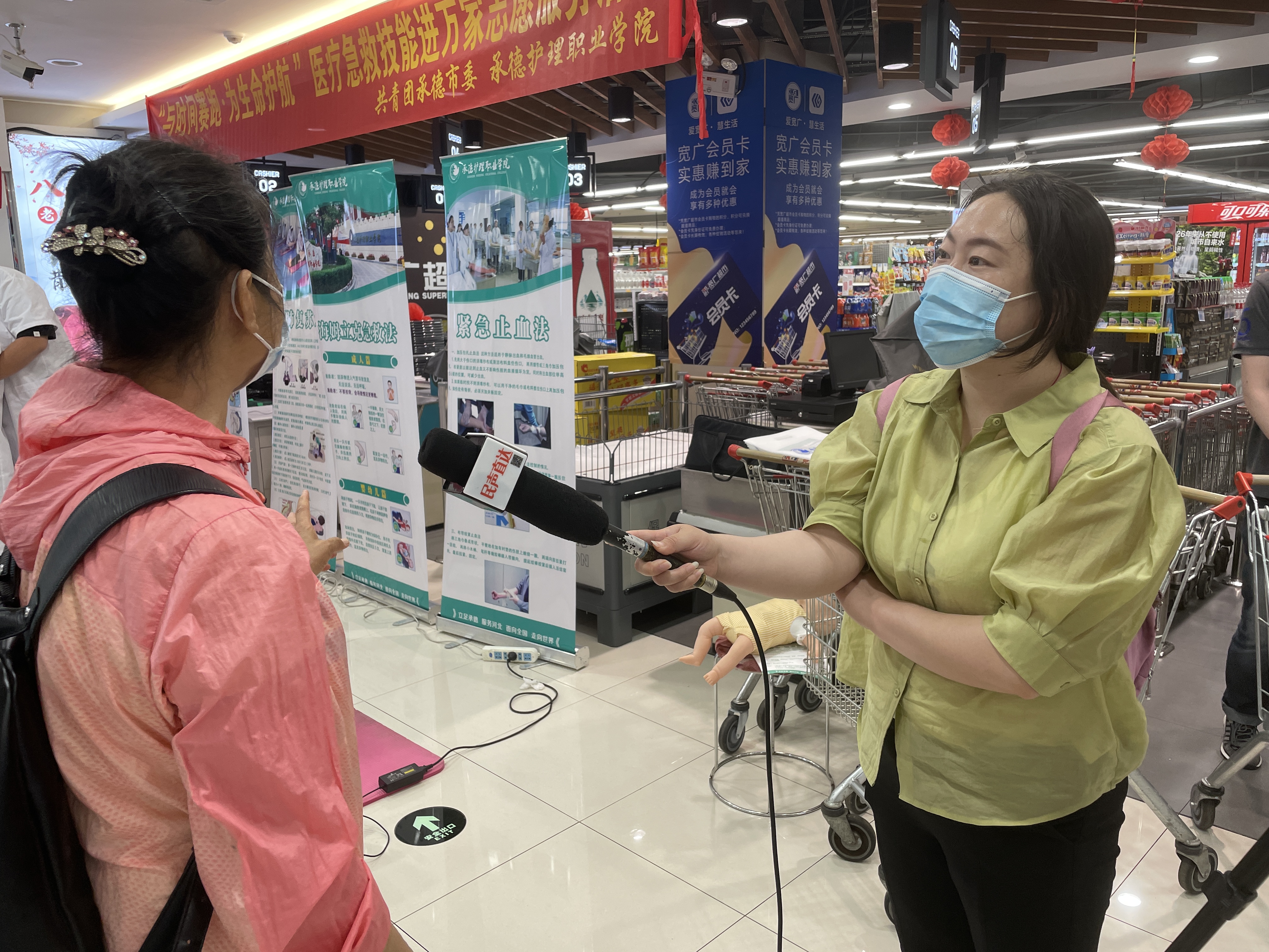 6月18日,beat365英国官方网站卫生健康志愿服务队走进宽广超市德汇店开展"与时间赛跑,为生命护航"医疗急救技能进万家活动,此活动继去年启动后,先后走进社区、走进学校、走进乡村,共开展健康知识普及和急救技能培训活动5次,惠及群众2000余人。
