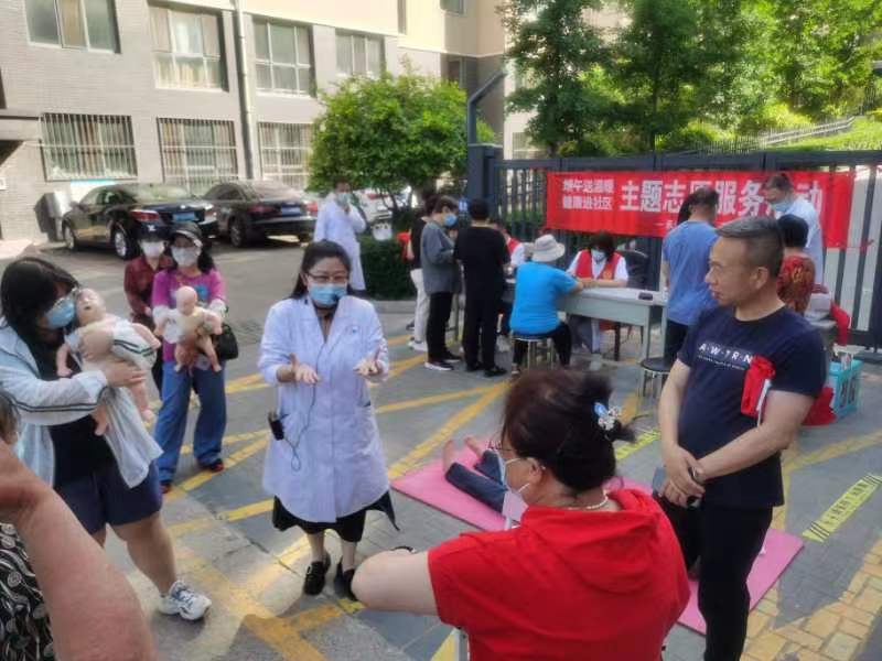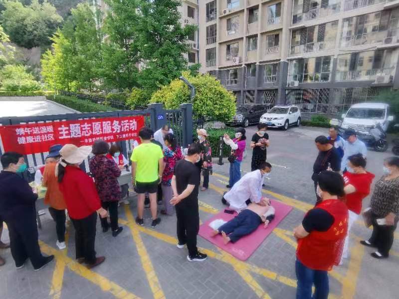 活动中,教师志愿者们免费为社区居民测量血压、血糖,发放健康宣传单,耐心细致解答居民提出的各种健康问题,并根据每个人的不同情况,给出科学的健康指导建议。活动现场,志愿者们还运用模拟人实际演示了心肺复苏技术、成年人和婴幼儿“海姆立克”急救方法,居民朋友们仔细聆听、踊跃参与、积极互动,老师们手把手指导居民操作演练,大家纷纷表示,今年的端午节过得不但温馨温暖,而且还收获了很多健康知识和技能,令人受益匪浅。