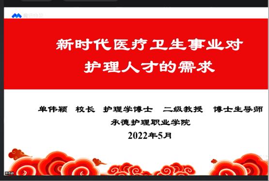 5月12日,在第111个国际护士节到来之际,学校党委副书记、院长单伟颖线上为师生作了题为《新时代医疗卫生事业对护理人才的要求》的学术报告,徐国辉副院长主持讲座。