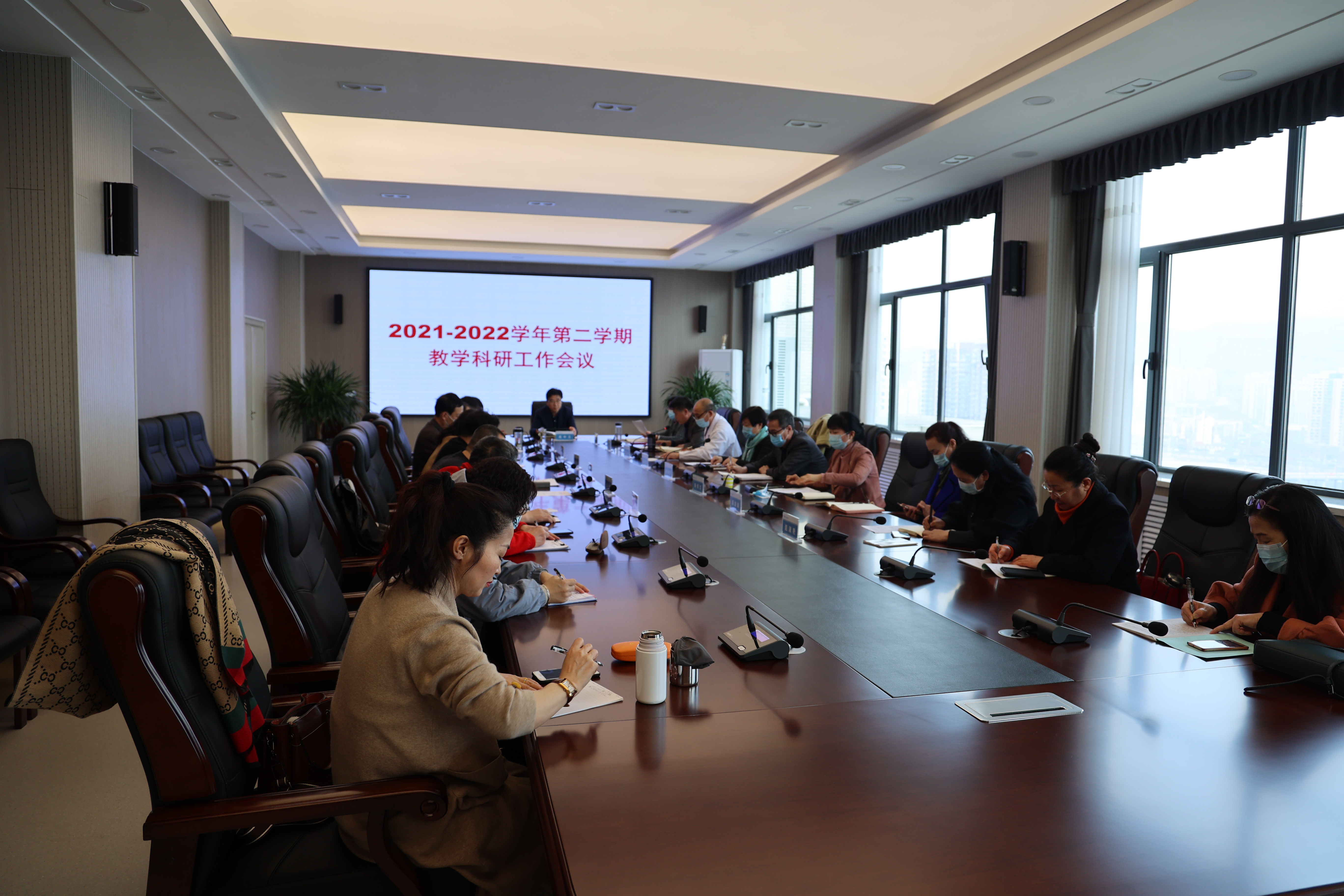 3月10日下午,beat365在601会议室召开2021-2022学年第二学期教学科研工作会,党委书记高中卫,党委副书记、院长单伟颖,党委委员、纪委书记王世震,党委委员、副院长徐国辉,党委委员、副院长崔艳华以及教务处、科研处负责人、各系部主任、教学副主任、图书馆馆长、教研室主任、诊改办主任、督导组负责人参加此次会议,会议由徐国辉主持。