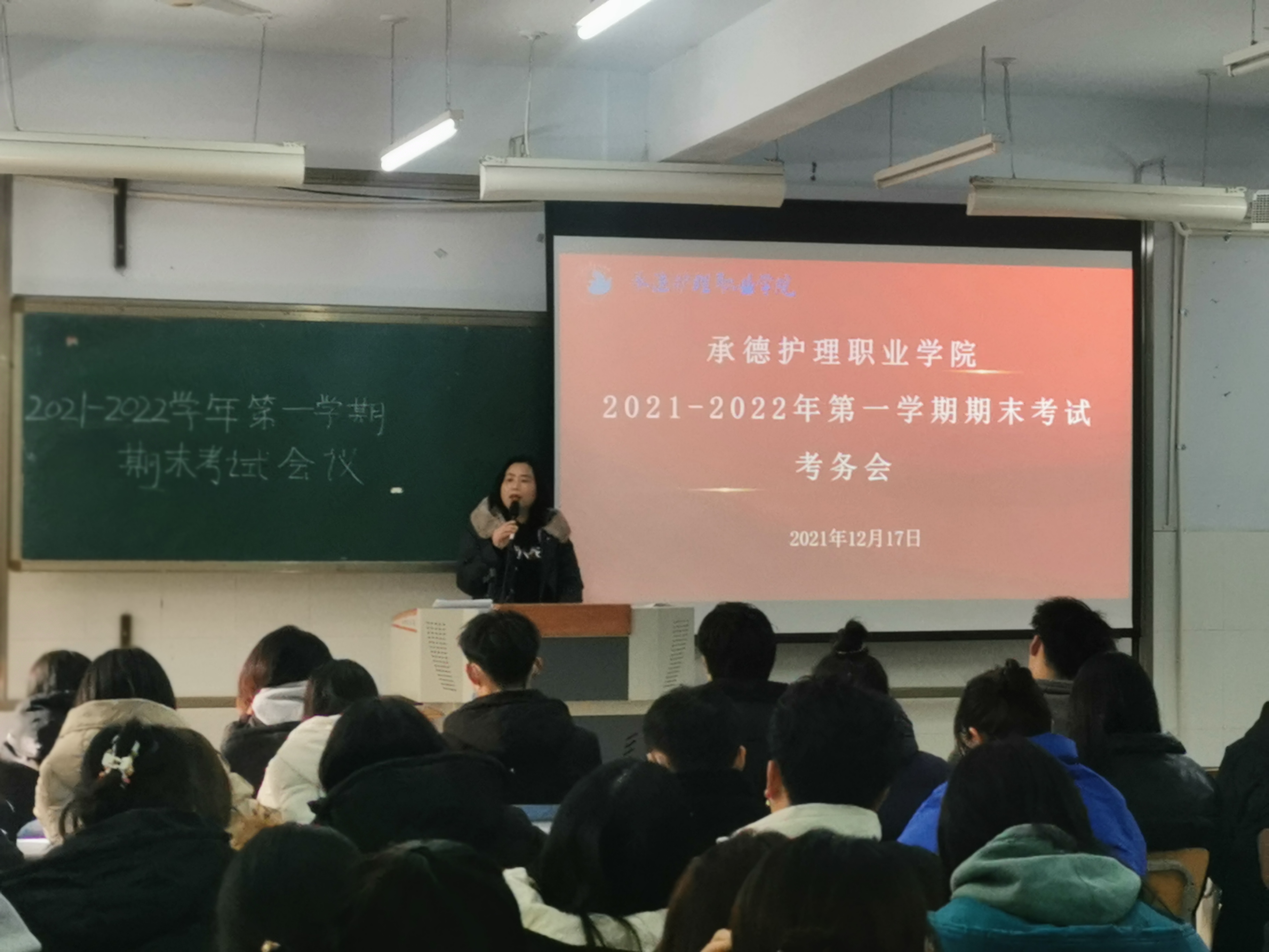 会上,鲍晓萍就学生办理缓考流程、考场规则、违纪作弊处理、旷考、补考等方面进行了详细地介绍说明,并结合考试违纪作弊案例,要求考生一定要遵守考试纪律,将诚信放在首位,杜绝作弊现象,要求各班班长及学委将此次会议精神传达给每名同学。