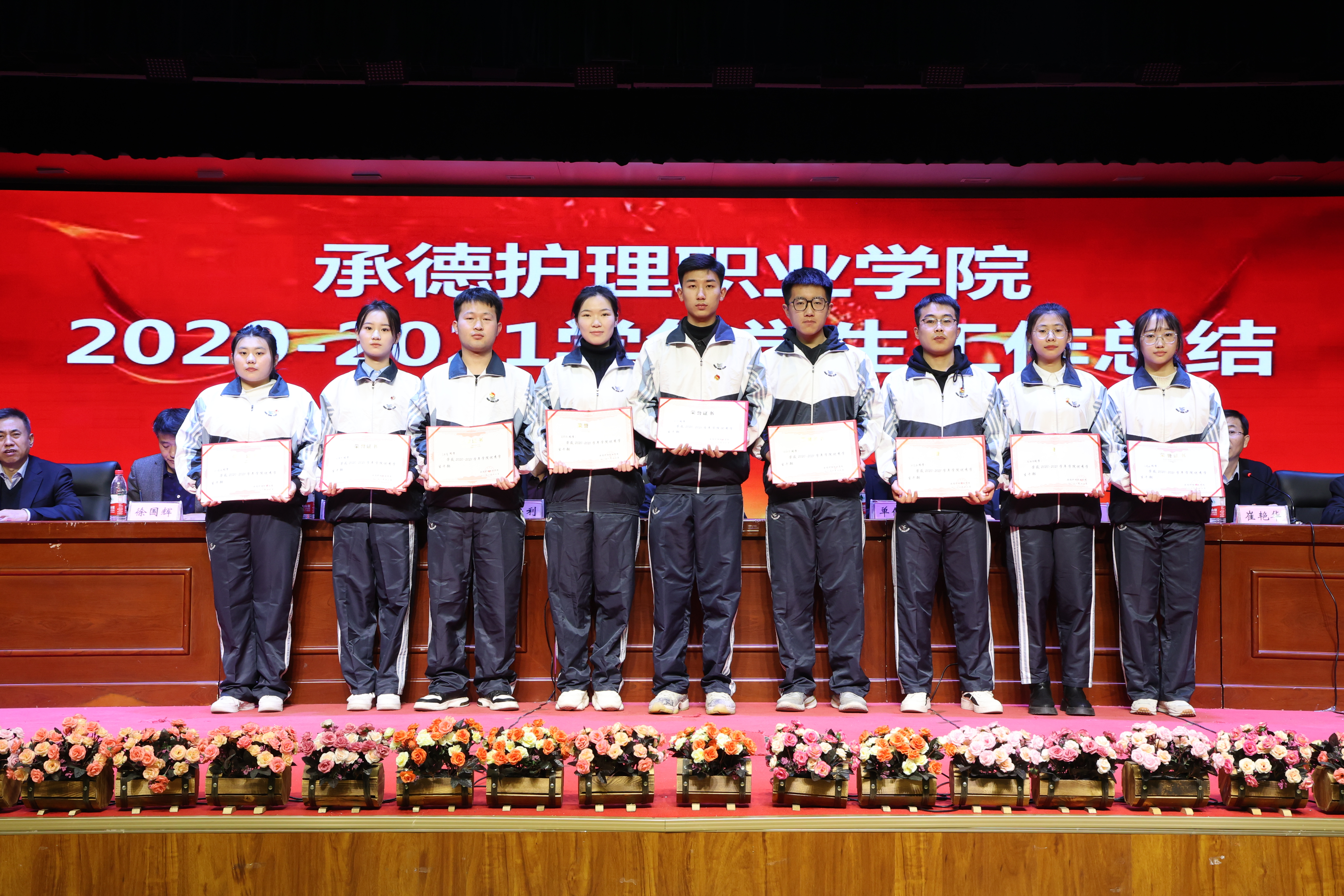 赵树才宣读了表彰决定。对尤玉华等501名三好学生,朱子怡等290名优秀学生干部,2020级涉外护理1班等24个先进班集体,2019级助产班等5个集体单项进步班级,张诗琪同学单项特长奖,孙海峰等6名优秀辅导员(班主任),王成等9名征兵工作先进个人,吕振京等8名就业工作先进个人,周妍等11名国家奖学金获得者,赵信博等113名学院一等奖学金获得者,李玉慧等404名学院二等奖学金获得者,马世博等323名学院三等奖学金获得者,龚秋然等10名颈复康药业英才奖学金获得者进行了表彰。