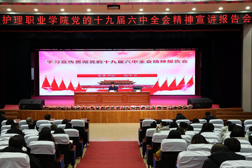 为深入学习领会党的十九届六中全会精神,按照省、市委有关要求部署,12月14日,在学校五楼会议厅召开学习党的十九届六中全会精神宣讲报告会。党委书记高中卫作宣讲报告。党委副书记赵树才主持会议。党委班子成员、各党总支、党支部书记、各系部、处室中层干部、全体在职教职工和业余党校学员在主会场参会,辅导员(班主任)组织学生在本班级收看直播。