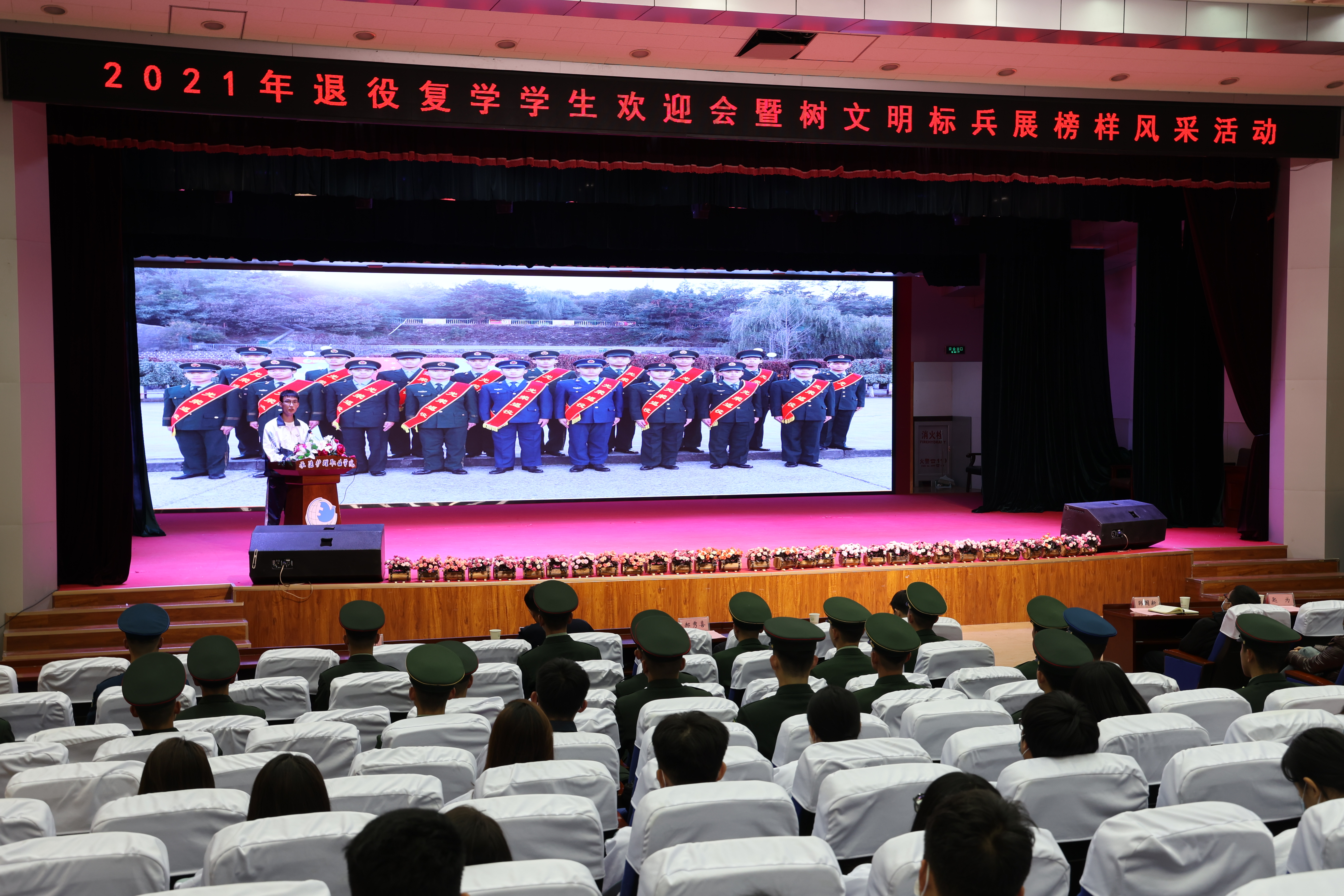 在校生雒亚东同学代表全体学生发言,他表示,要向退役复学学生学习,学习他们崇军尚武的英雄气概,学习他们从军报国的家国情怀,学习他们勇于挑战的大无畏精神,努力提高自身素质,争做学生楷模,努力成为德、智、体、美、劳全面发展的新时代大学生。
