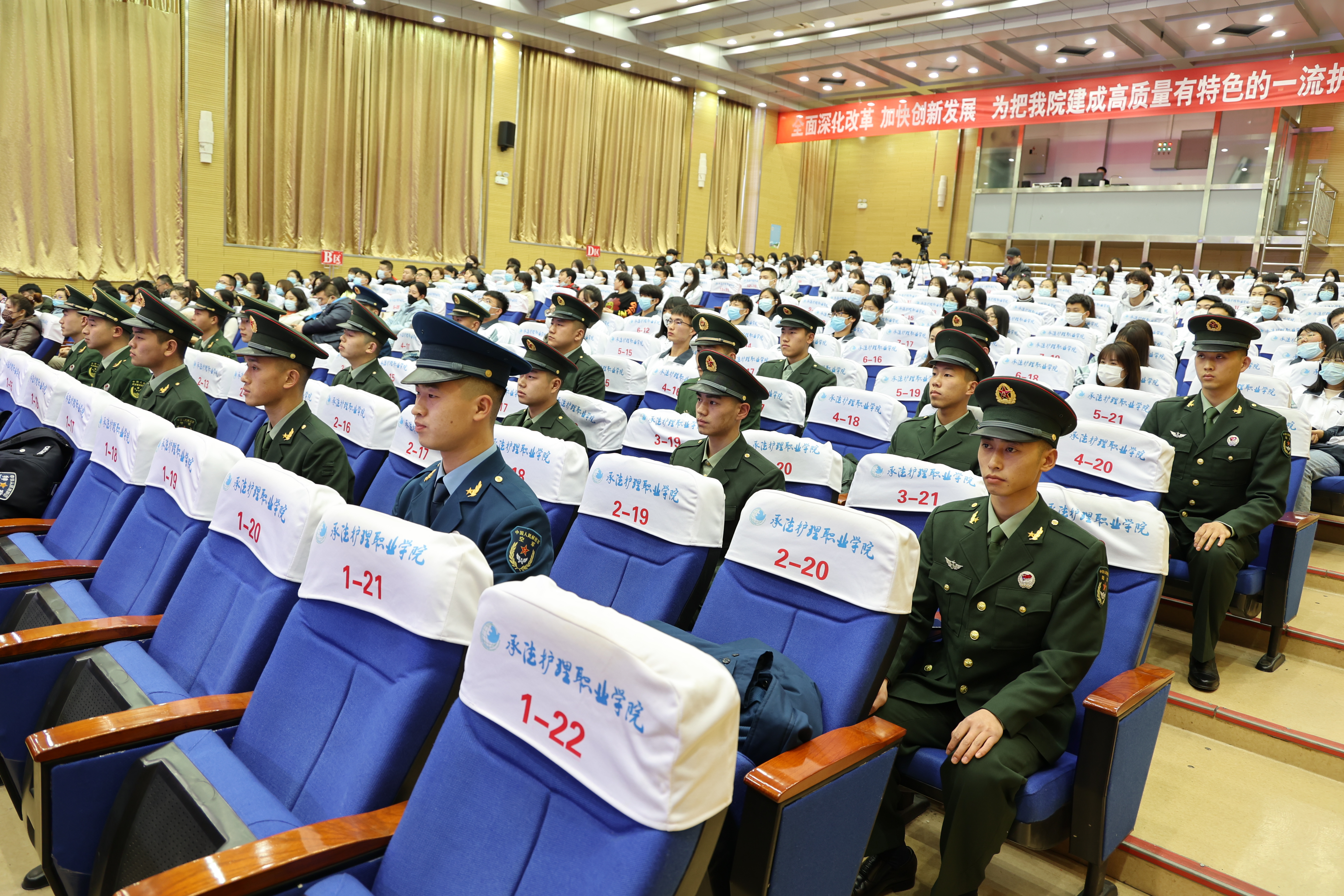 退役复学学生代表贺龙杰在发言中,既有对学校关心与关怀的真诚感谢,也有在部队的经历、收获的分享和体会,更有复学后对学校师生给予温暖的感动,并坚定承诺继续发扬人民军队的优良传统,努力学习,为学校的精神文明建设、爱国主义教育和国防教育做出新的贡献。