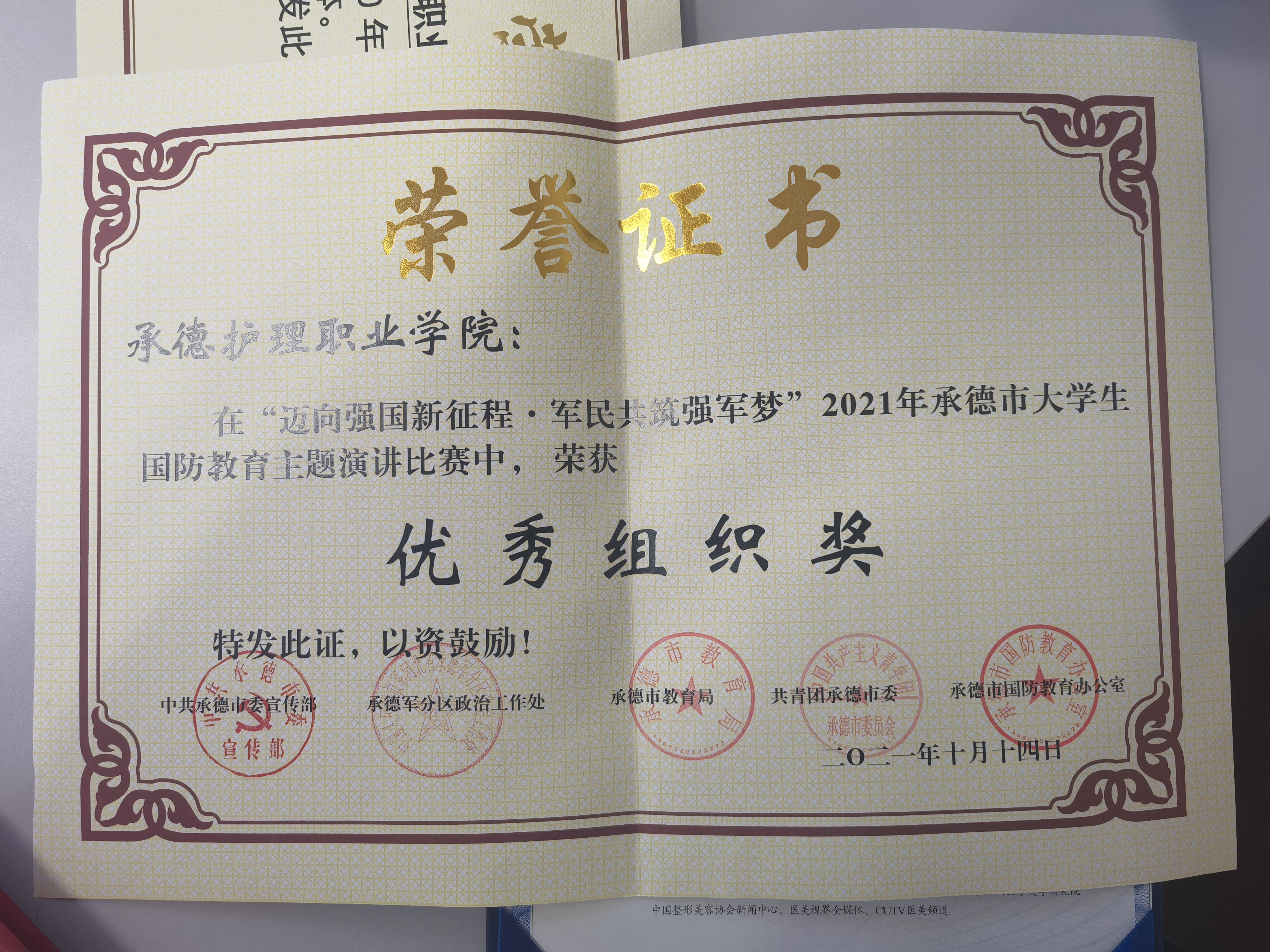 经过激烈角逐,beat365武装部选派的2020级助产班易若航、2020级临床医学3班节春凝、2020级涉外护理4班张一帆荣获三等奖,杜海然荣获“优秀指导教师”称号,学校被授予“承德市全民国防教育工作先进单位”和“承德市大学生国防教育主题演讲比赛优秀组织奖”。(武装部)