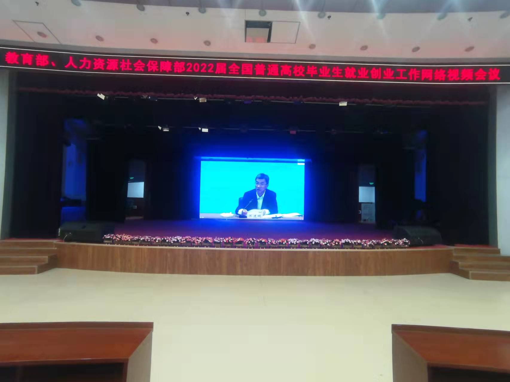 11月19日下午,教育部办公厅、人力资源社会保障部办公厅召开2022届全国普通高校毕业生就业创业工作网络视频会议。党委委员、副院长白兴武,招生办全体工作人员、实习就业指导处全体工作人员、武装部主要负责人及负责征兵工作人员、各系党总支书记、就业专管员、全体2022届毕业班辅导员班主任在五楼会议厅集中收看现场会议实况。