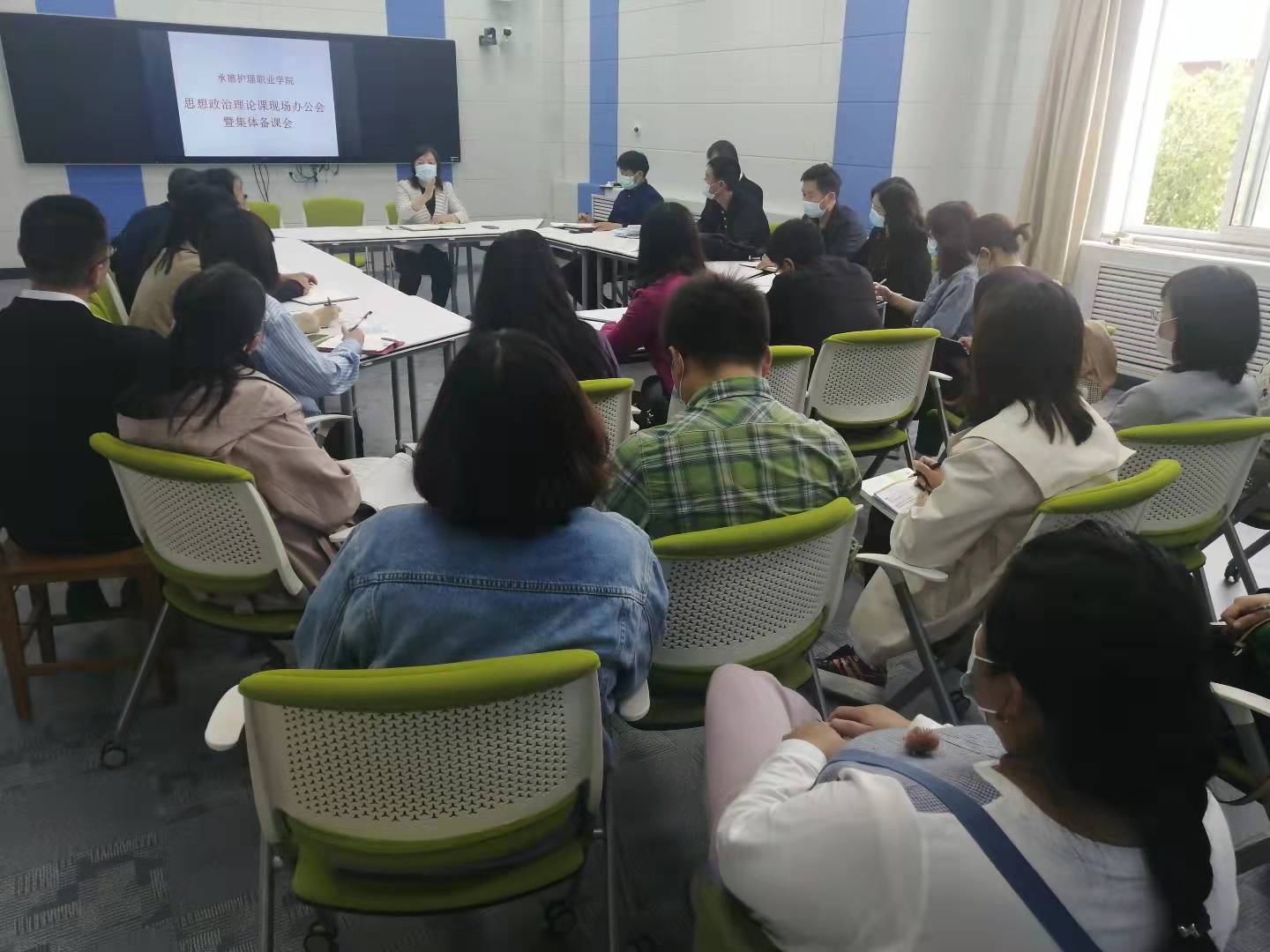 9月30日,学校党委书记高中卫、党委副书记、院长单伟颖参加思政部集体备课暨现场办公会。党委副书记赵树才、党委委员、纪委书记王世震,党委委员、副院长徐国辉,党委委员、办公室主任苗玉东出席会议。思政部负责同志以及思政课教师参加了会议。会议听取了思政课教师2021版新教材的培训情况汇报,并就《思想道德与法治》的“绪论”进行了研讨和集体备课。