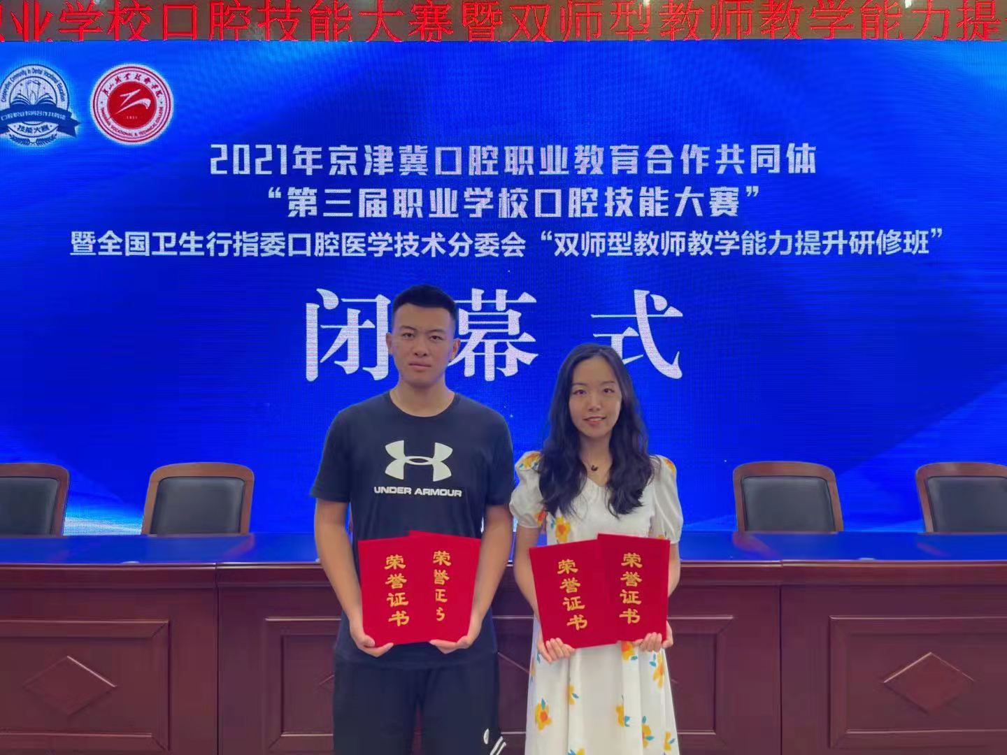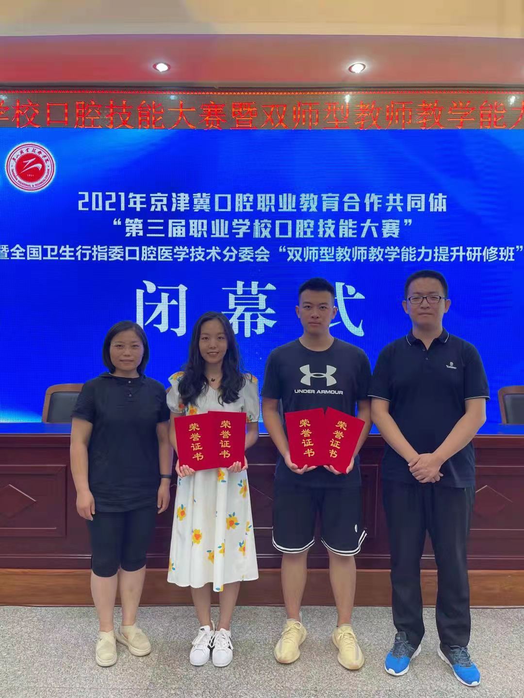 7月25日,京津冀口腔职业教育合作共同体“第三届职业学校口腔技能大赛”在唐山落下帷幕,beat365医学系选派的2019级口腔医学专业袁园、张龄熤两名学生在比赛中沉着冷静、不畏强手,凭借自身扎实的技艺和良好的心理素质,分获窝洞制备组一、二等奖;牙体预备组二、三等奖。