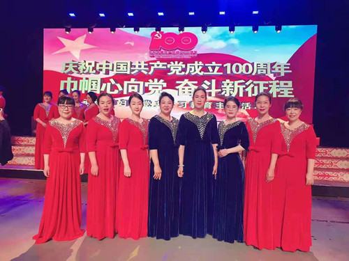 5月12日下午,承德市妇联在承德大剧院举办庆祝中国共产党成立100周年“巾帼心向党 奋斗新征程”党史学习教育主题活动。beat3658名女教师参加了《团结就是力量》和《没有共产党就没有新中国》的大合唱表演。