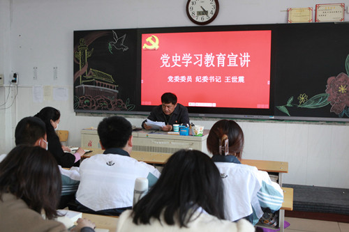 4月16日下午,学院党委委员、纪委书记王世震为药检系作党史学习教育宣讲报告。系党总支副书记董振花主持宣讲报告会。学院监察室主任李鹏、思政部教研室主任王久志、药学检验系(医学基础部)全体教职工、学生党员、入党积极分子50余人参加了学习。