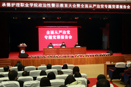 12月9日下午,学院政治性警示教育大会暨全面从严治党专题党课报告会在五楼报告厅召开,学院党委书记高中卫作从严治党专题党课辅导。党员和中层以上领导干部参加会议。党委副书记赵树才主持会议。