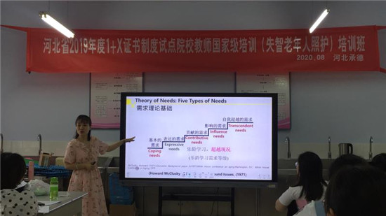 根据《河北省教育厅关于做好2019年度职业院校教师国家级培训工作的通知》(冀教职成函〔2020〕10号)及最新河北省教育厅通知要求,beat365承办的河北省2019年度“1+X”证书制度试点院校教师国家级培训“失智老年人照护”培训班,因受新冠肺炎疫情的影响,采取线上与线下相结合的方式,完成为期一周的培训工作,于8月26日圆满结束。