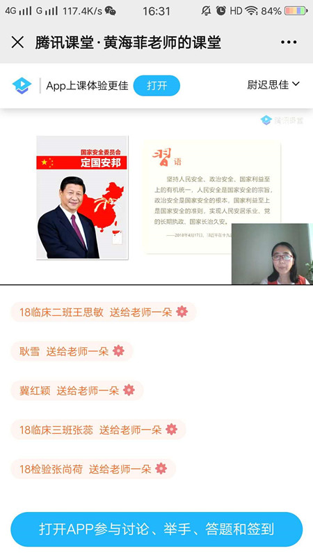 课上,黄海菲老师,从培养总体国家安全观的重要意义、理解和把握总体国家安全观的内涵、国家安全与我们息息相关、现阶段我们应该怎么做四这个方面进行深刻剖析和讲解。强调了进入新时代,我国面临复杂多变的国际、国内的形势,安全和发展环境遭受严峻挑战,如:重大传染病、环境污染、强权政治、恐怖主义等,内外因素比历史上任何时候都要复杂,维护国家安全的任务更加繁重艰巨。课堂上运用大量的案例、数据、视频和事迹充分阐释了构建集政治安全、国土安全、生物安全、军事安全、经济安全、文化安全、社会安全、科技安全、网络安全、生态安全、资源安全、核安全、海外利益安全等于一体的国家安全体系的重要性。同时结合疫情防控的案例,阐释了人民安全是国家安全的核心。人民至上、生命至上是我们党的鲜明价值导向,坚决维护人民生命健康安全。习近平总书记强调:只有构建起强大的公共卫生体系,健全预警响应机制,全面提升防控和救治能力,织密防护网、筑牢筑实隔离墙,才能切实为维护人民健康提供有力保障。激励广大师生热爱祖国、服从大局、听党指挥,在疫情防控中,