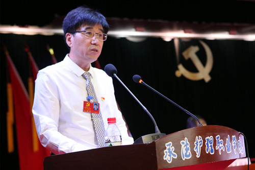 党委书记高中卫同志代表中共beat365英国官方网站第一届委员会作了题为《全面深化改革 加快创新发展 建设高质量有特色的一流护理职业院校》的党委工作报告。