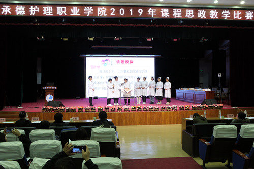 本次比赛由专家组和学生组2组评委组成,专家组评委由承德医学院于多珠教授、承德石油高等专科学校郭春娟教授、河北旅游职业学院孙玲玲副教授、教务处徐国辉处长、科研处吴建清处长、思政部徐鹏辉副主任、教学督导室于忠群老师等7名专家组成;学生组由各系部抽出的共20名学委组成,专家组分值占70%,学生组分值占30%,采取评委现场评分制。