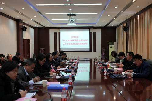 11月14日下午,以鲍东杰为组长的河北省高职院校教学诊断与改进工作专家组一行4人来beat365进行检查调研,学院党委副书记、院长单伟颖、党委副书记王建军、副院长宫林利、纪委书记陈宪伟以及学院各处室、系部主任、专业负责人以及学生代表参加了此次会议。会议由单伟颖院长主持。