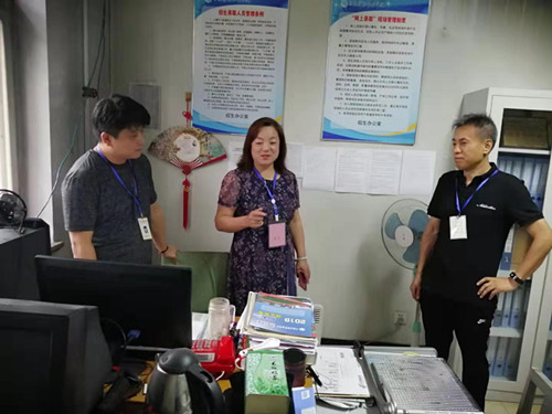 2019年8月11日下午,院长单伟颖同志顶着淅淅沥沥的秋雨,来到学院招生录取工作现场视察指导工作,详细询问了目前各省、各专业生源情况,认真听取了招生办负责人的汇报。对大家克服困难、坚守岗位、严谨细致、认真负责的工作态度给予肯定和表扬。