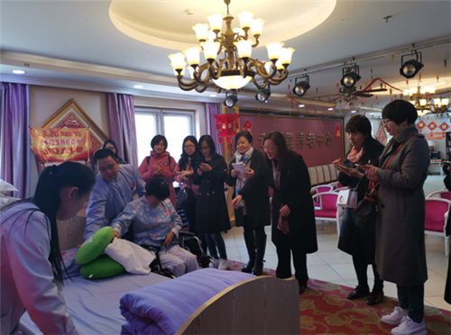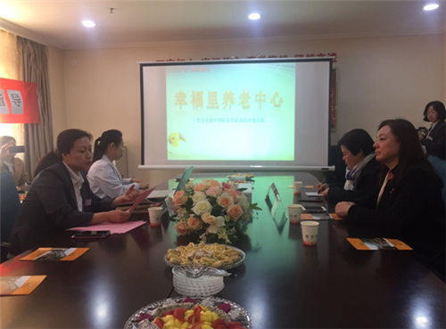 上午10时,单伟颖院长带领养老护理项目团队成员来到幸福里养老中心,受到养老中心于晓颖院长的亲切接待,大家参观了老人的房间、观看了由养老中心老人和员工表演的舞蹈节目、护理部的三位部长用娴熟的技术向大家展示了老年人常用的操作项目规程。随后双方进行了座谈。通过座谈参观团一行了解了养老院的基础设施、入住率、人力资源配置、收费标准等相关情况。并就养老院的运营模式、人才培养机制等展开讨论,并达成长期合作的意向。