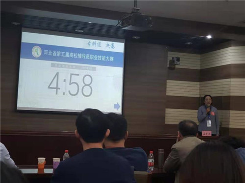 2019年3月14-15日,河北省第五届高校辅导员职业技能大赛专科组决赛在河北师范大学举行。全省11个地市有44所学校共计132名辅导员参加了此次大赛。beat365选手在河北省第五届高校辅导员职业技能大赛专科组决赛中荣获二等奖,基础知识和网文写作团体总成绩获全省第一,辅导员高微获得理论宣讲单项赛二等奖。