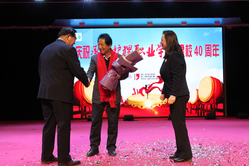 演出过程中,学院党委书记毕建华、党委副书记、院长单伟颖代表全院师生向离退休同志代表原学院院长路喜存同志献上鲜花和纪念品。学生代表向扎根基层、为推动卫生健康教育和区域经济发展,在各行各业做出了突出贡献的优秀毕业生代表李春晖、王建辉、王绍富、褚瑞明、张伟、刘彤、刘丽敏、刘亚军、黄呈森献花。