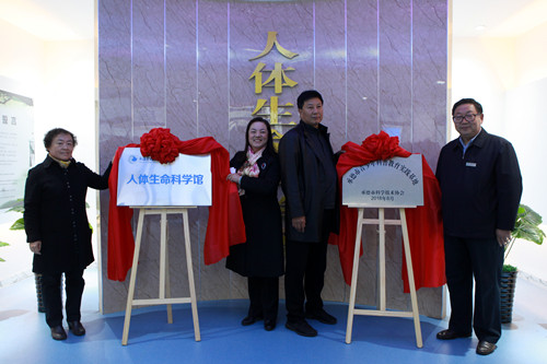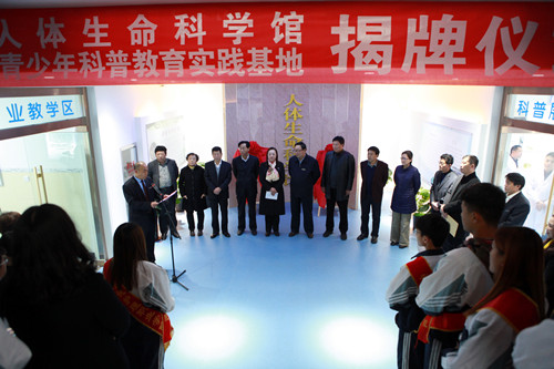 开馆仪式上,学院毕建华书记和市科协李建华副主席为《承德市青少年科普教育实践基地》揭牌;学院院长单伟颖、副院长吕瑞芳为“人体生命科学馆”揭牌。仪式结束后,大家一起参观了展馆。(医学基础部)