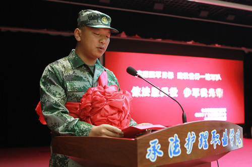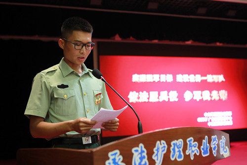 欢送会上,入伍学生披红挂彩,喜气洋洋。付国君代表入伍学生发言,表达了参军入伍的幸福、激动与自豪,对国家和学校出台的相关政策的感谢,表示绝不辜负母校的期望,用实际行动报效祖国,为校争光。退伍复学学生卢跃文畅谈了军营体会。