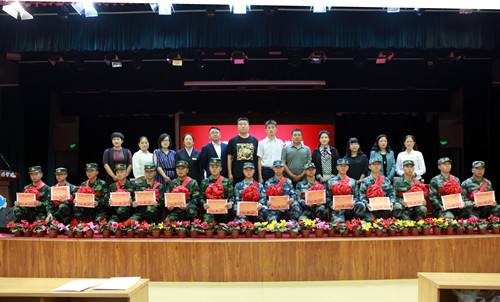 会后,校领导和入伍学生合影留念。(武装部)