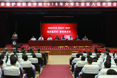 携笔从戎书青春本色,建功军营圆强国梦想。9月11日下午,2018年大学生入伍欢送会在五楼报告厅隆重举行。学院党委书记毕建华、党委副书记王建军、15名应征入伍大学生、武装部、学生处负责人和各系主任、书记、辅导员、退役复学学生代表及300多名学生参加了欢送会。欢送会由学院党委副书记王建军主持。
