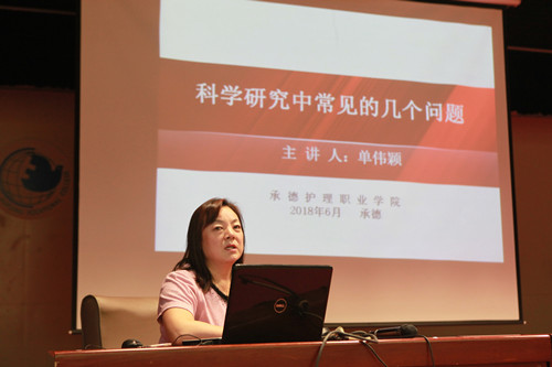 为加强学院内涵建设,加强beat365教师的科研素养,提升beat365整体科研水平,6月21日下午,在五楼会议厅举行了《科学研究中常见的问题》学术讲座,由beat365党委副书记、院长单伟颖教授主讲,吕瑞芳副院长主持。单伟颖院长是护理学博士、三级教授、硕士研究生导师,多年来一直致力于科学研究,有很高的学术造诣,本人及所带领团队多次获得国家、省、市级荣誉称号。