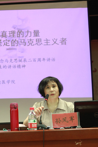 孙凤君教授用生动的故事、诗歌的语言、哲学的思维、深厚的情感分享了她学习和感悟马克思主义的体会,谈论了马克思主义和现实的关系,结合自身实践与思考,介绍了成为一个马克思主义者的三个步骤:第一步,马克思主义者敢于面对现实,马克思主义者是通过思考现实来实现面对现实的;第二步,马克思主义者敢于批判现实,马克思主义者是通过批判现实来寻找现实中的真实的;第三步,马克思主义者敢于改造现实,马克思主义者是通过改造现实来实现理想人生的。孙教授的讲座使马克思主义更贴近生活,为当代青年人深入理解马克思主义,感悟其中真义,并将其作为自我精神引领指明了方向。为全校师生上了一堂精彩的思政课。