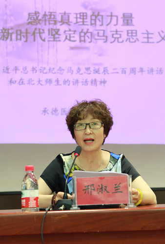 党委宣传部副部长邢淑兰在总结时希望全院师生以此为契机,加强马克思主义理论学习;要旗帜鲜明,坚定马克思主义信仰;要履职尽责,坚守马克思主义理论传播。要用马克思主义理论去“认识世界,把握规律,追求真理,改造世界”,将马克思主义落实在今后学习和工作之中。按照习近平总书记的要求,要紧跟历史前进的脚步、时代发展的潮流、做到知行合一;在为人民谋福利、为民族谋复兴、为世界谋大同的潮流中,做到爱国、励志、求真、力行,让真理的光芒和信仰的力量引导自己,把学习贯彻习近平新时代中国特色社会主义思想不断引向深入。切实将习近平总书记在北京大学师生座谈会和纪念马克思诞辰200周年大会上重要讲话讲话精神转化为高校立德树人的政策体系、工作举措以及育人体系和教学模式,转化为广大师生勇担时代重任的精神力量和自觉行动。