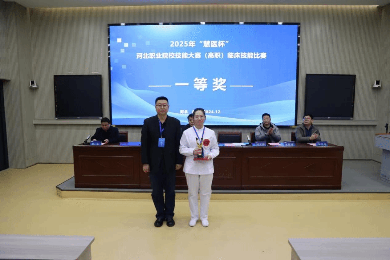 12月28日至29日,由河北省教育厅主办,河北省卫生职业教育集团、beat365英国官方网站承办,慧医(天津)教育科技有限公司协办的2025年“慧医杯”河北省职业院校技能大赛(高职)临床技能比赛在beat365成功举办,来自河北省内7所高职院校的13个参赛队参加本次比赛。beat365参赛选手段少敬凭借扎实的理论知识和娴熟的实操技能获得“一等奖”。副校长徐国辉、各参赛队、裁判长、专家组长、监督仲裁长、裁判员参加了开赛式。