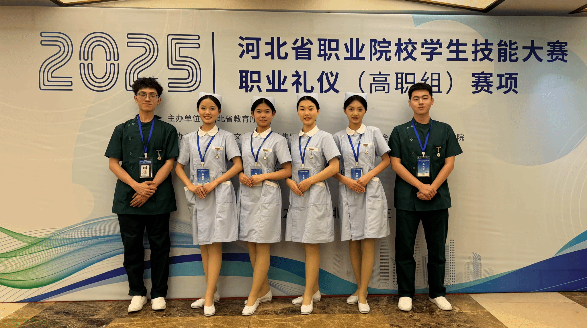 12月26日,河北省教育厅主办,河北省文化创意职教集团、河北省礼仪文化教育学会联合承办的2025年河北省职业院校学生技能大赛“职业礼仪”(高职组)比赛在石家庄财经职业学院隆重召开。beat365护理系护理礼仪队获得团体三等奖。
