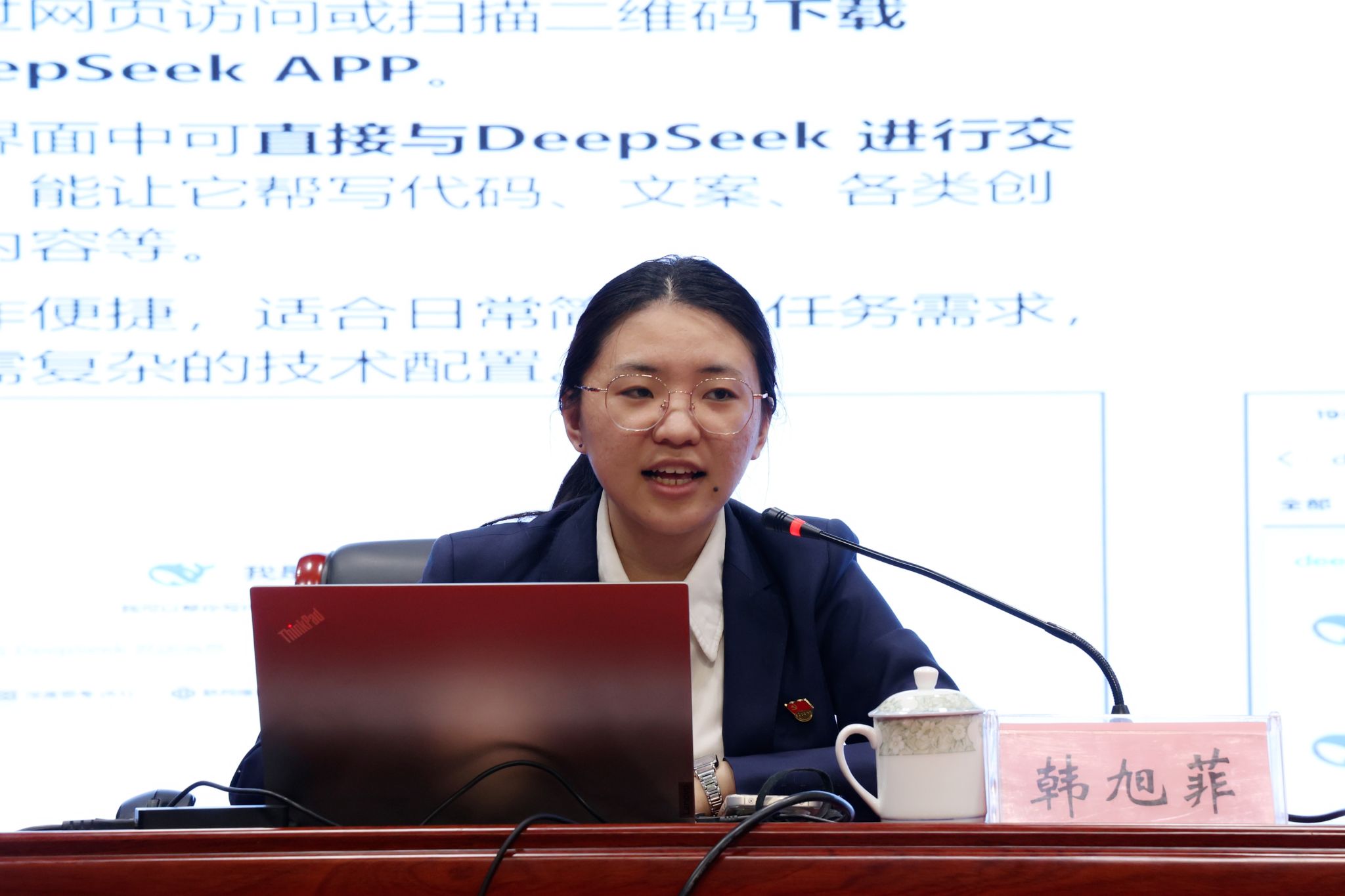 为积极响应国家关于“人工智能+”行动的战略部署,推动学校教育信息化转型工作,促进师生人工智能技术安全有效应用,4月10日下午,学校邀请中国电信河北公司教育行业解决方案专家韩旭菲来校讲授指导DeepSeek应用。学校党委理论学习中心组成员、全体中层干部、师生代表参加现场学习,各班学生在班级收看直播,讲座由校党委副书记赵树才主持。