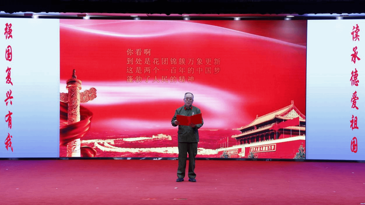 本次研学演诵思政课活动由承德市关心下一代工作委员会组织12名退休老同志志愿奉献。整场演出以情景诵读、影像字幕为主要形式,融入音乐、影视互动等综艺元素,将承德昨天的记忆、今天的奋斗、明天的梦想生动地展现在大家面前,现场气氛热烈,师生备受鼓舞。
