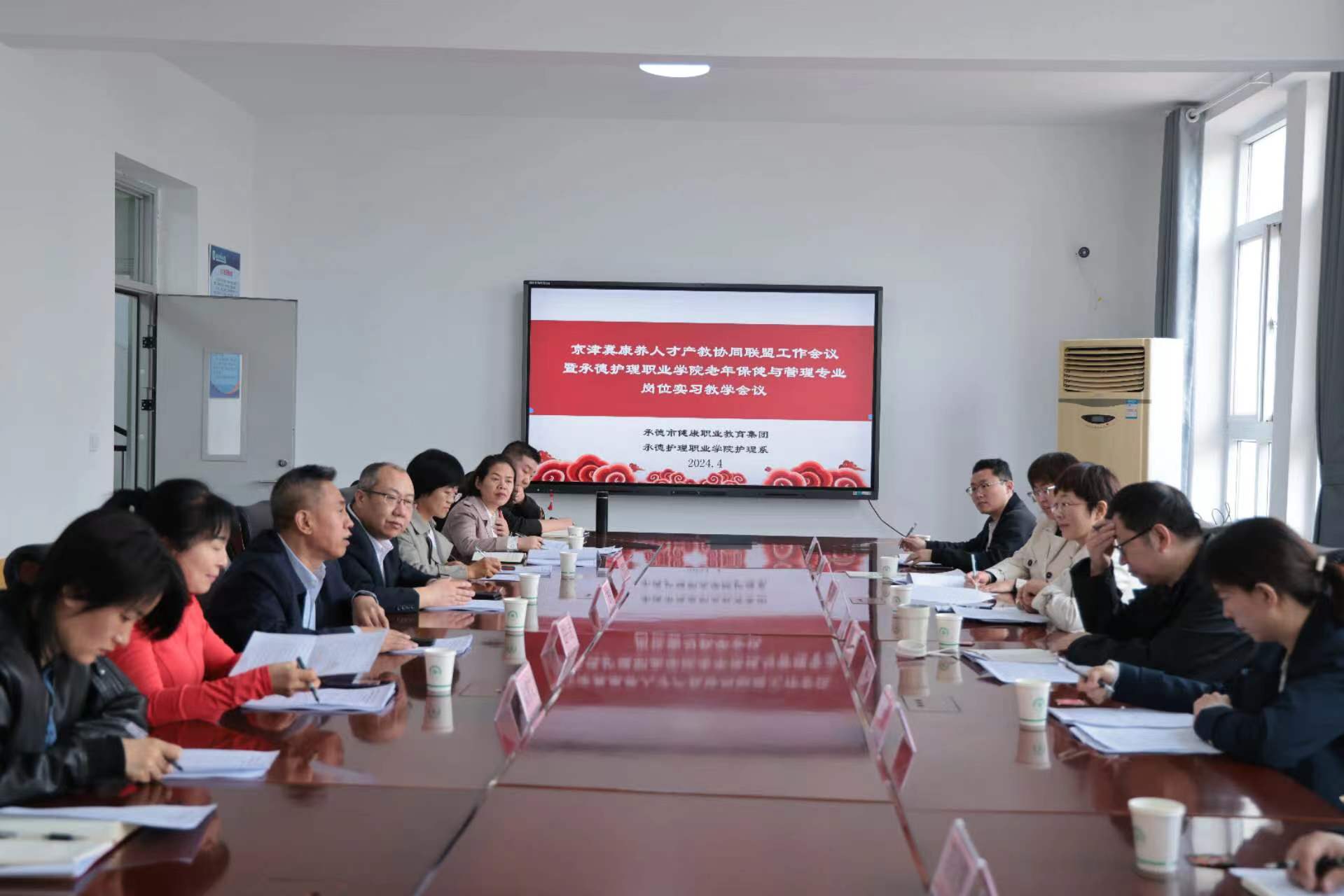 4月20日上午,承德市职业教育健康集团京津冀康养人才产教协同联盟2024年度工作会议在学校顺利召开,京津冀康养人才产教协同联盟成员单位领导、代表参加会议。学校副校长白兴武到会并致欢迎词,实习与校企合作中心、康养相关专业教学团队、学生代表参加会议。会议由护理系主任秦博文主持。