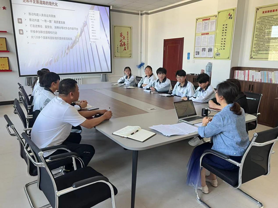 会上,双方支部书记介绍了支部基本情况和支部建设情况,纪检监察室党支部书记李鹏同志以《以中国式现代化推进中华民族伟大复兴》为题,为两个支部的党员上了一堂生动的党课。参会的教师党员和学生党员围绕“结合自身感受说一说我国经济、社会、科技等方面的发展取得的突出成就”为主题深入交流,其中来自雄安新区的一名同学说道:“自己家乡几乎每天都在发生着日新月异的变化,处处都体现了中国式现代化的发展速度”。同学们纷纷表示这次党课交流生动形象,受益匪浅,在未来的学习、工作中将立足本职工作,发挥共产党员的先锋模范作用,为中国式现代化建设贡献自己的力量。
