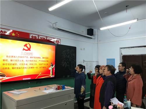 最后,全体党员重温入党誓词,面向党旗庄严宣誓。(药学检验系教师党支部)